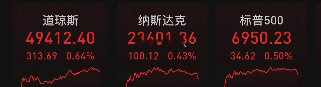 北京时间2026年1月27日凌晨,美股周一收高,道指涨313.69点,涨幅为0.64%,报49412.40点;纳指涨100.11点,涨幅为0.43%,报23601.36点;标普500指数涨34.62点,涨幅为0.50%,报6950.23点。交易员密切关注政治动态,并为关键财报周及美联储最新利率决议做准备。