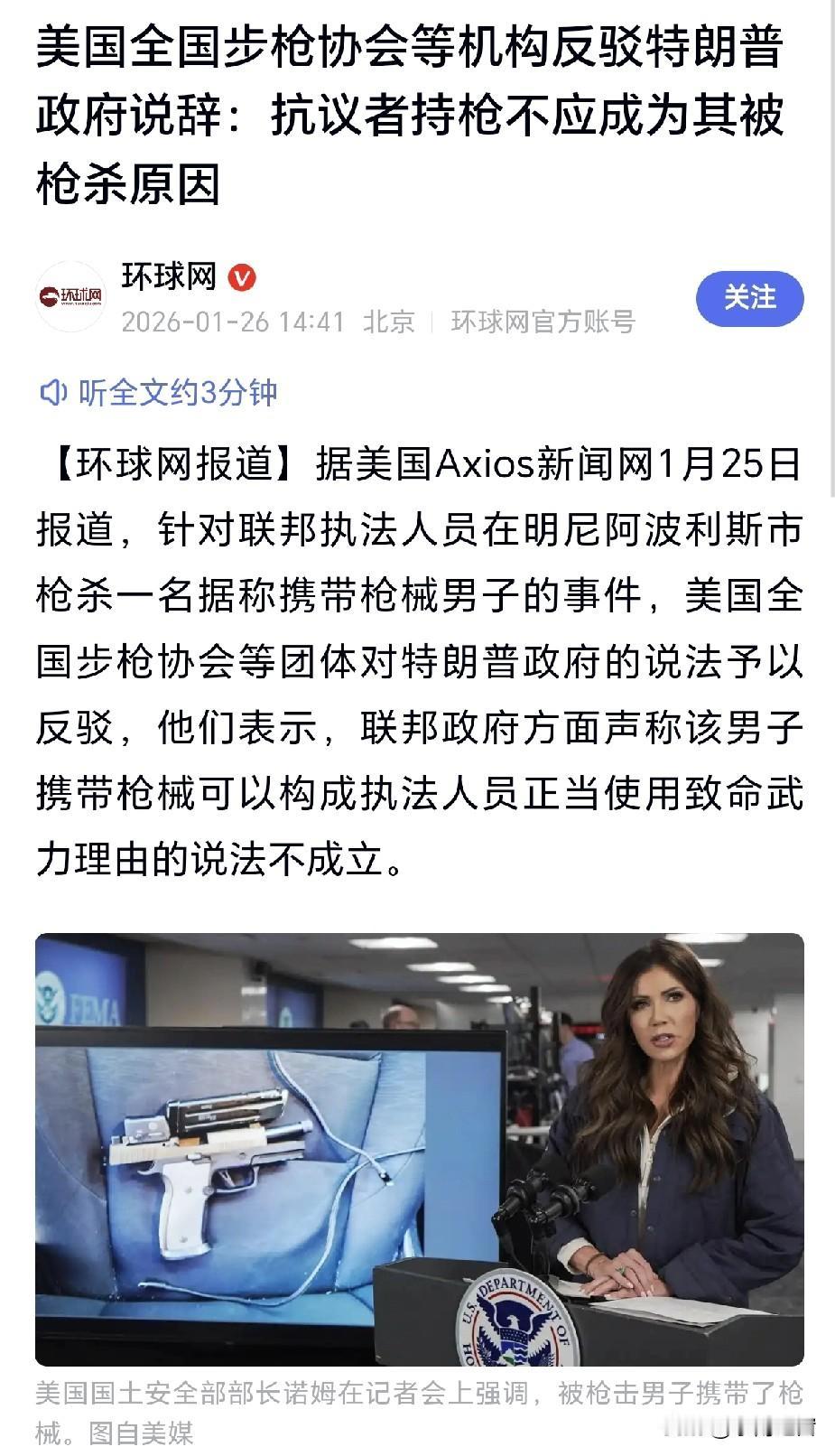 别再扯什么宪法权利和执法双标了,这起枪杀案的本质,就是美国枪支泛滥种下的恶因结出的恶果。步枪协会高举“抗议持枪权”的大旗,却刻意回避一个致命问题——当合法持枪的普通人带着满弹匣的手枪出现在抗议现场,本身就等于往火药桶里扔了根火柴。执法人员面对这种场景,紧张到误判是大概率事件,毕竟没人能瞬间分辨对方掏的是手机还是扳机;而所谓的“持枪自由”,早就在一次次对峙和误杀里,变成了“人人自危”的枷锁。说到底,不是执法者太冷血,也不是维权者太莽撞,是这个把枪杆子当“护身符”的畸形社会,早就没了分辨“权利”和“危险”的能力。