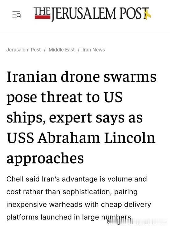加拿大军事专家: 伊朗无人机对美国在中东地区耗资巨大的海军舰队(包括航空母舰“亚伯拉罕·林肯”号)构成了重大威胁。 伊朗将廉价弹头与低成本平台相结合,对先进系统构成了有效的非对称威胁。 伊朗有能力通过大量无人机同时发动饱和攻击,对敌方防御系统施加巨大压力。