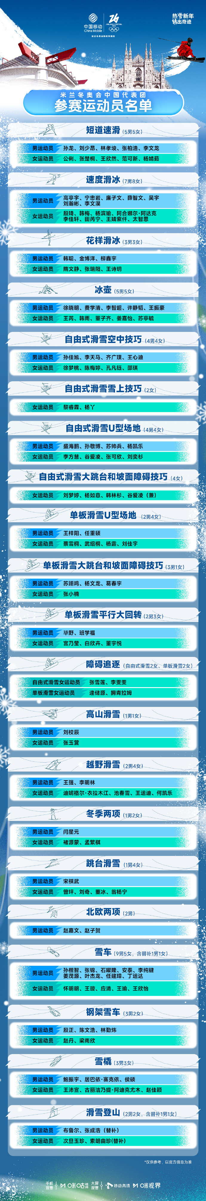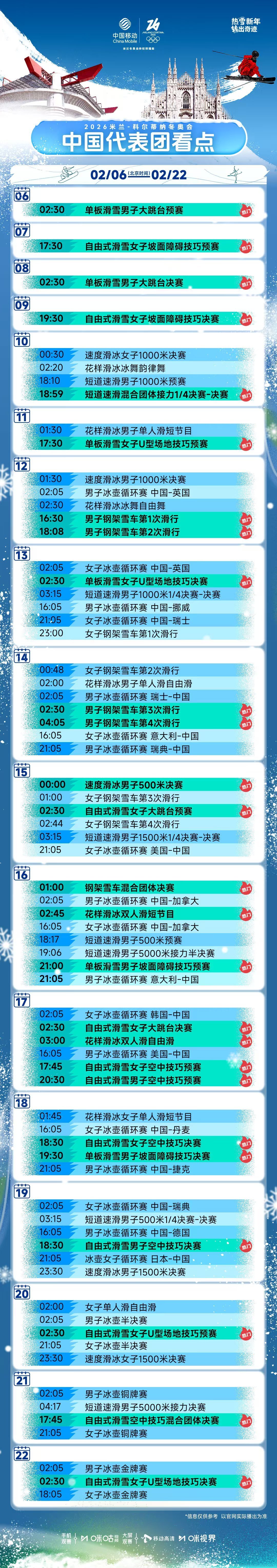 #2026冬奥会倒计时10天# #米兰冬奥会中国代表团看点#准备好进入冬奥时间了吗?和一起见证中国冰雪健儿的追梦之旅,我们共同的名字叫做Team CHINA! ❄️2月5日-23日,全场次直播米兰冬奥会,欢迎届时收看。#看冬奥上咪咕#