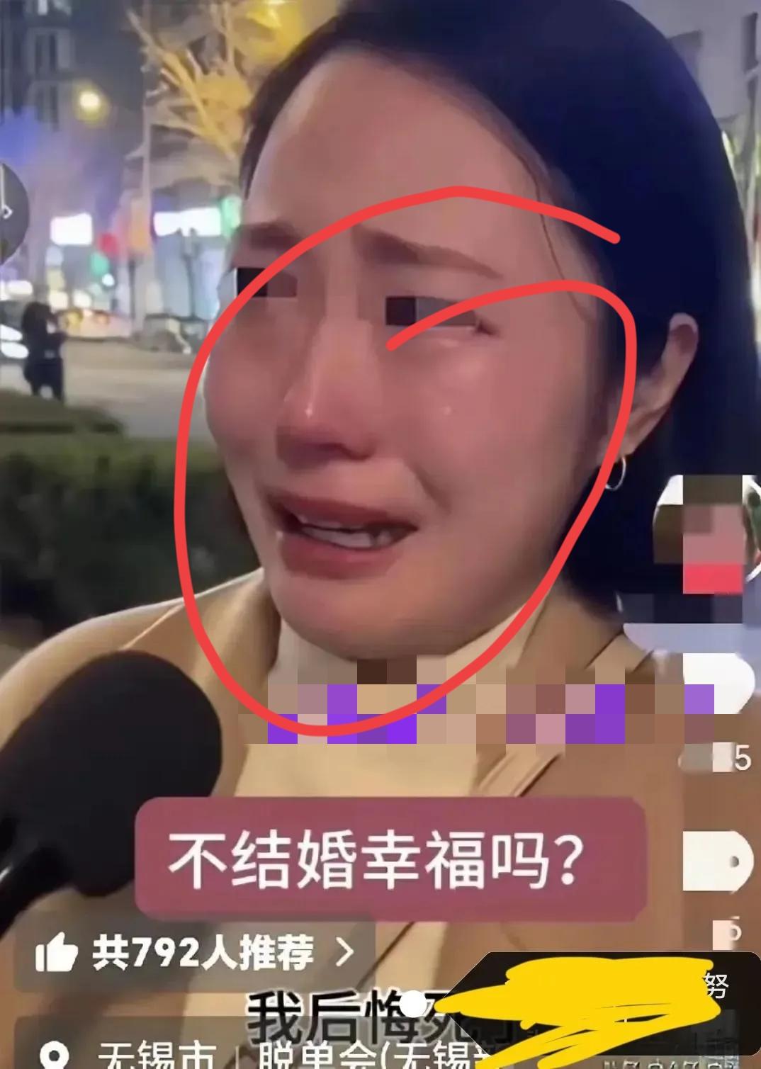 毒鸡汤害的后悔死啦!!!!! 最近无锡。一个女人走在大街上,有一个记者拿起麦克风采访了她,记者问她,你多大岁数了,找没找对象,不找对象幸福吗?女人当时就哭了起来,女人告诉记者,我今年 36 岁,不找对象,不幸福啊。 别再用“单身顶配”的鸡汤麻痹自己了!最近一位36岁女士的街头痛哭,狠狠撕开了那些漂亮话的伪装。 她曾经笃信“婚姻是枷锁”,沉迷于没人管束的自由,却在深夜病痛和万家灯火时,尝尽了孤独的滋味。如今她幡然醒悟:那些只鼓吹单身潇洒的言论,从不会告诉你岁月流逝后选择变少的现实,更不会替你承担年龄渐长后的冷清与重量。这世上从来没有绝对正确的生活方式,只有适不适合自己的真实需求。 单身不等于失败,结婚也不是胜利,真正的陷阱是活在他人的话语里,用别人的标准来衡量自己的幸福。人生不是非黑即白的单选题,温暖陪伴与自我空间从来都可以兼顾。与其被极端言论带节奏,不如静下心来听听自己内心的声音:你渴望的究竟是怎样的生活?那些曾经让你深信不疑的“人生真理”,如今再看还成立吗?