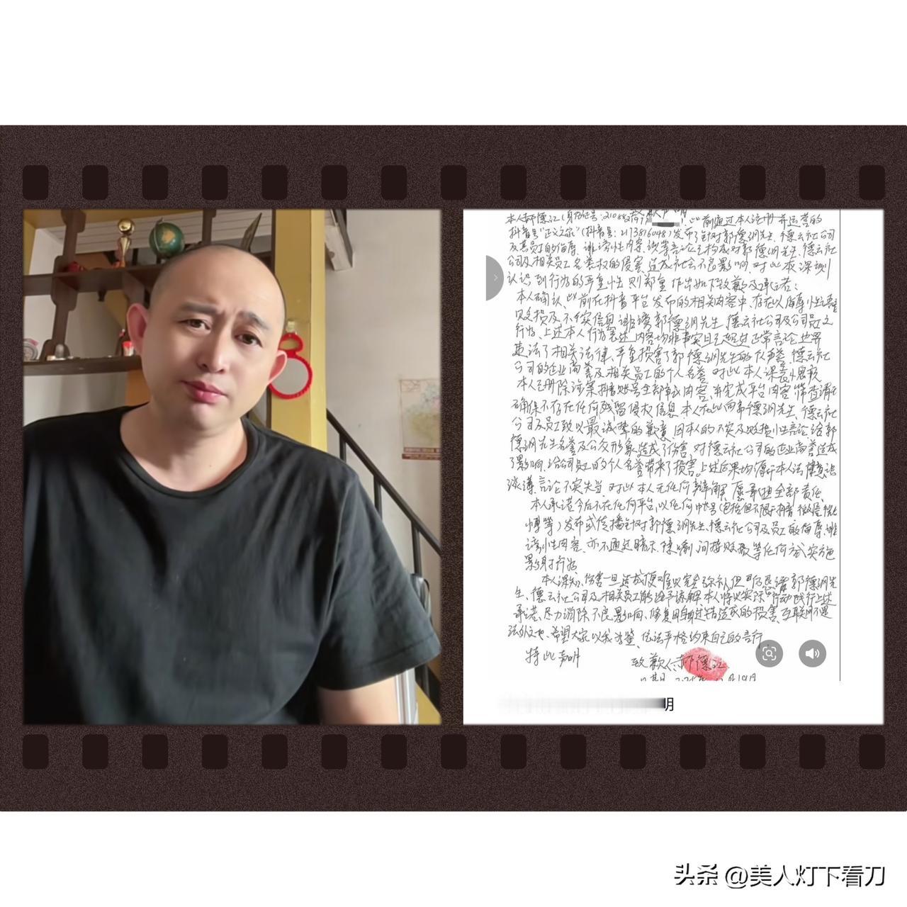 曹云金大粉向郭德纲道歉! 今日,知名金粉“正义之家”,手写道歉信,向德云班主郭德纲公开致歉,承认对郭先生和德云社有过侮辱诽谤性不实言论,并愿承担全部责任。 有一说一,这位老师字写的真的不好看,看着辣眼睛,行文落笔和字里行间,透着满满的不耐烦;关键还错字病句,把“删除” 误写成“册除”,“违法了相关法律”也是个病句,看ID是辽宁网友,也不知是不是郑好老师的小学同学~ 网络不是法外之地,希望大家都能文明上网和友好交流,一致反对骂街和网暴的行为,维护良好网络风气。 支持曹云金的都是什么年龄段的? 郭德纲