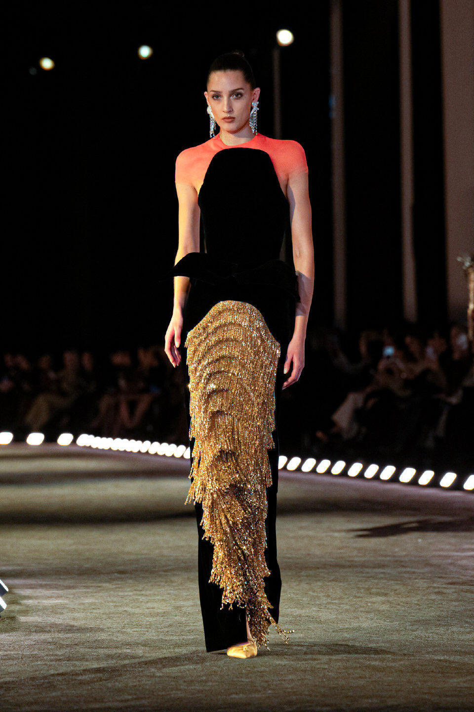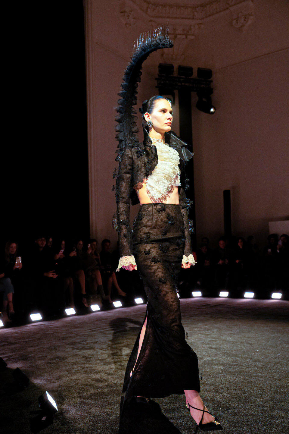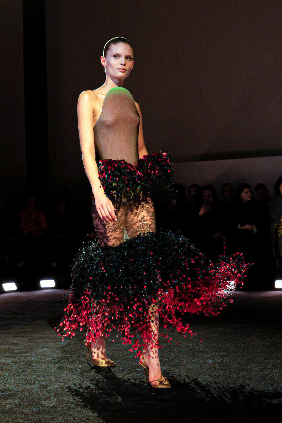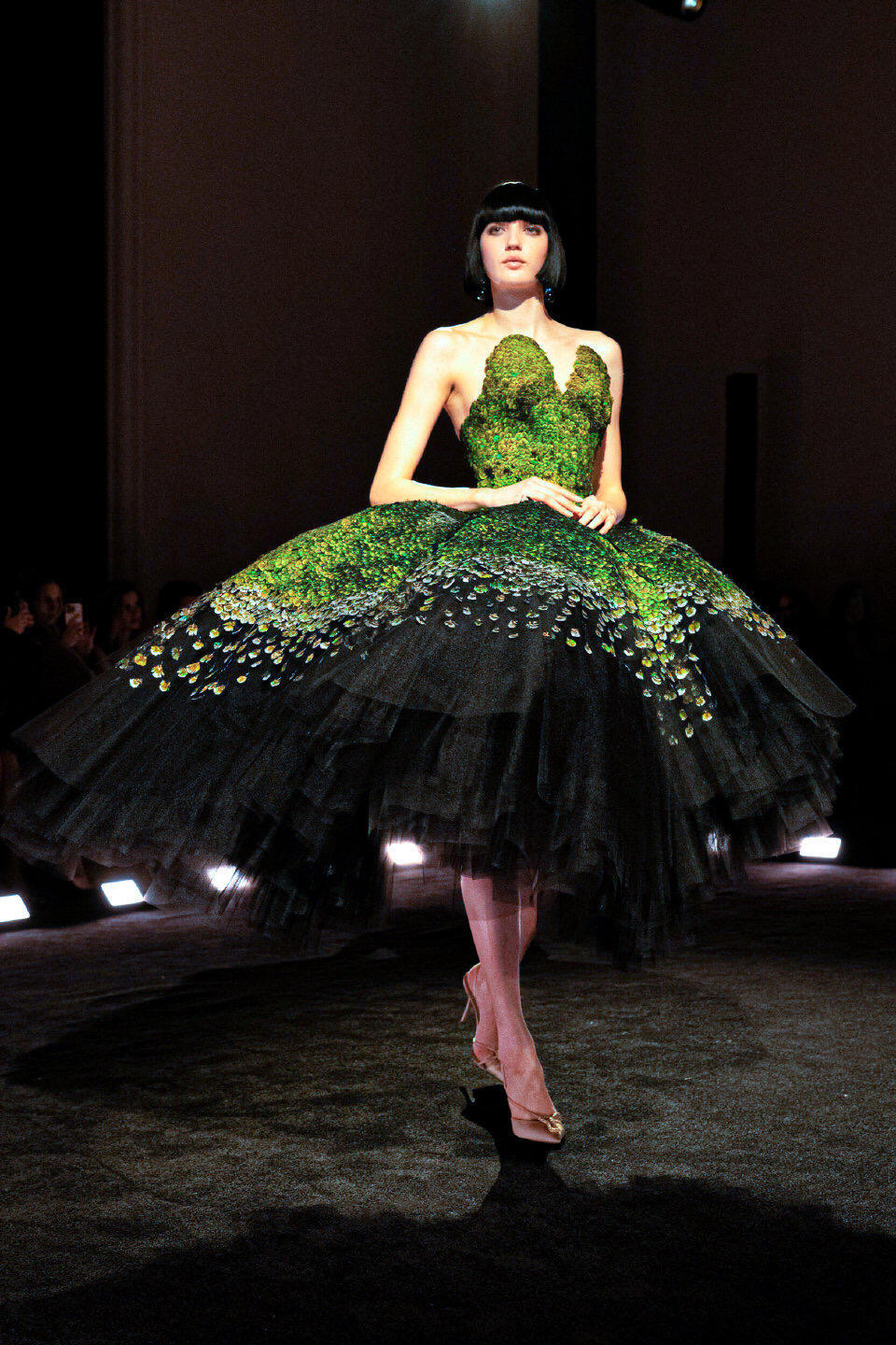 巴黎高定时装周大秀直击 Schiaparelli2026春夏高定在巴黎高定周上,Schiaparelli以“痛苦与狂喜”为主题,用一场充满超现实感的大秀震撼开场。设计师Daniel Roseberry从西斯廷教堂的静修体验中汲取灵感,将羽毛、蝎尾、树脂喙部等奇幻元素融入服装,打造出如同神话生物般的夸张廓形。真丝与手工羽毛的碰撞,让每件作品都成为行走的艺术,既有宗教般的神圣肃穆,又带着原始野性的视觉冲击,为高定周带来充满力量感的开篇。