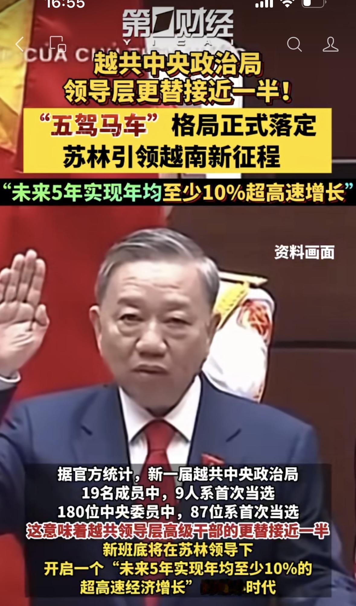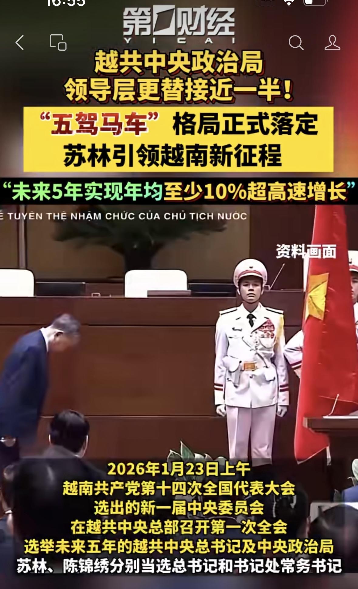 越南在阔步前进,祝福越南人民!向越南同志致敬!中国方面致电祝贺越南共产党第十四次全国代表大会召开。相信在以苏林总书记同志为首的越共中央领导下,越南一定能够完成越共十四大提出的各项目标任务,早日实现越南“两个一百年”奋斗目标。中越应当坚持道不变、志不改,团结合作推动发展,携手迈向美好未来。