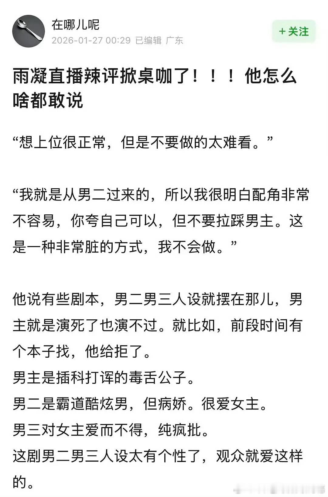 刘宇宁说配角掀桌这个现象,确实很多配角人设更时髦,但感觉演员的演技也很重要,好的演技可以给扁平的人设赋魅