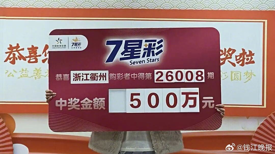 【#衢州一女子中500万体彩7星彩大奖#】衢州的杜女士中了500万元的体彩7星彩大奖。不过,她的中奖彩票跟寻常常见的有点不同——7星彩一等奖的中奖规则是,投注号码的全部数字与开奖号码对应位置数字均相同!当期7星彩的中奖号码为:454199+14。杜女士这张彩票上的号码是“449915+14”,看着好象没中奖?关键就在前面的那个“两组二同”上。杜女士中的是1月18日体彩7星彩第26008期大奖。当期,全国中出2注一等奖,单注奖金500万元,杜女士收获其中1注,中奖彩票购于衢州市柯城区荷花三路10-20号的3308063029号体彩实体店。1月19日下午,中奖者杜女士(化姓)来到浙江省体育彩票管理中心领取了大奖。据了解,杜女士购彩已经十多年了,有着丰富的购彩经验。她喜欢在同一家体彩实体店购彩,经常会和其他购彩者相互分享购彩心得。杜女士这次的中奖票为一张前区组合复式票,选择的形态为“两组二同”。从投注方式可以看出,杜女士对7星彩的规则和投注方式都非常了解,“我买彩票已经有十多年了,大乐透、7星彩都经常买,后来7星彩新规则上市以后,我就开始尝试研究新的投注方式,前区全组合、3+3等投注方式都买过。”不过,据小编了解,杜女士说的7星彩“前区全组合”的玩法,2025年7月1日起已调整为“前区组合复式玩法”。杜女士的彩票上,前区形态为“两组二同”,就是前区组合复式玩法10种形态规则中的一种。“两组二同”,指前区的6个数字,有两组2个相同并分别与其他2个各不相同,例如112234。所以,杜女士选的“449915”这组号码,其实包含了180种组合、也就是180注彩票,中奖的,正是这180种组合中包含的“454199+14”这组数字。看起来是不是有点烧脑?在买彩票这件事上,杜女士确实非常专业。对于购彩理念,杜女士表示,“中奖不要强求,要相信一切随缘,做到快乐购彩,理性购彩。”她也会继续支持中国体育彩票,希望未来能迎来更多更好的运气。