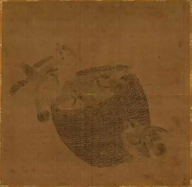 传 南宋 宋汝志 雏雀图 绢本墨画淡彩 21.6×22.5cm。这幅宋画名作完美的刻画出雀巢内外忙着振翅欲飞的雏雀们可爱的瞬间之姿。作品未描绘背景,而是采用水墨及淡彩, 以异常细腻的笔风,准确描绘出雀巢及雏雀。画面真实的仿佛可以听见雏雀的鸣声和振翅声,雏雀羽毛的细腻表现,以及与此形成鲜明对比的雀巢线条的刚劲且直接的表现方式,可以看出画家的不俗功力。宋汝志为钱塘(浙江省杭州)人,南宋末期的理宗景定年间(1260~64)左右供职于宫廷。据说其师从同为画院画家的楼观,长于山水、人物、花竹、翎毛的绘画。这就是中国风遇见艺术
