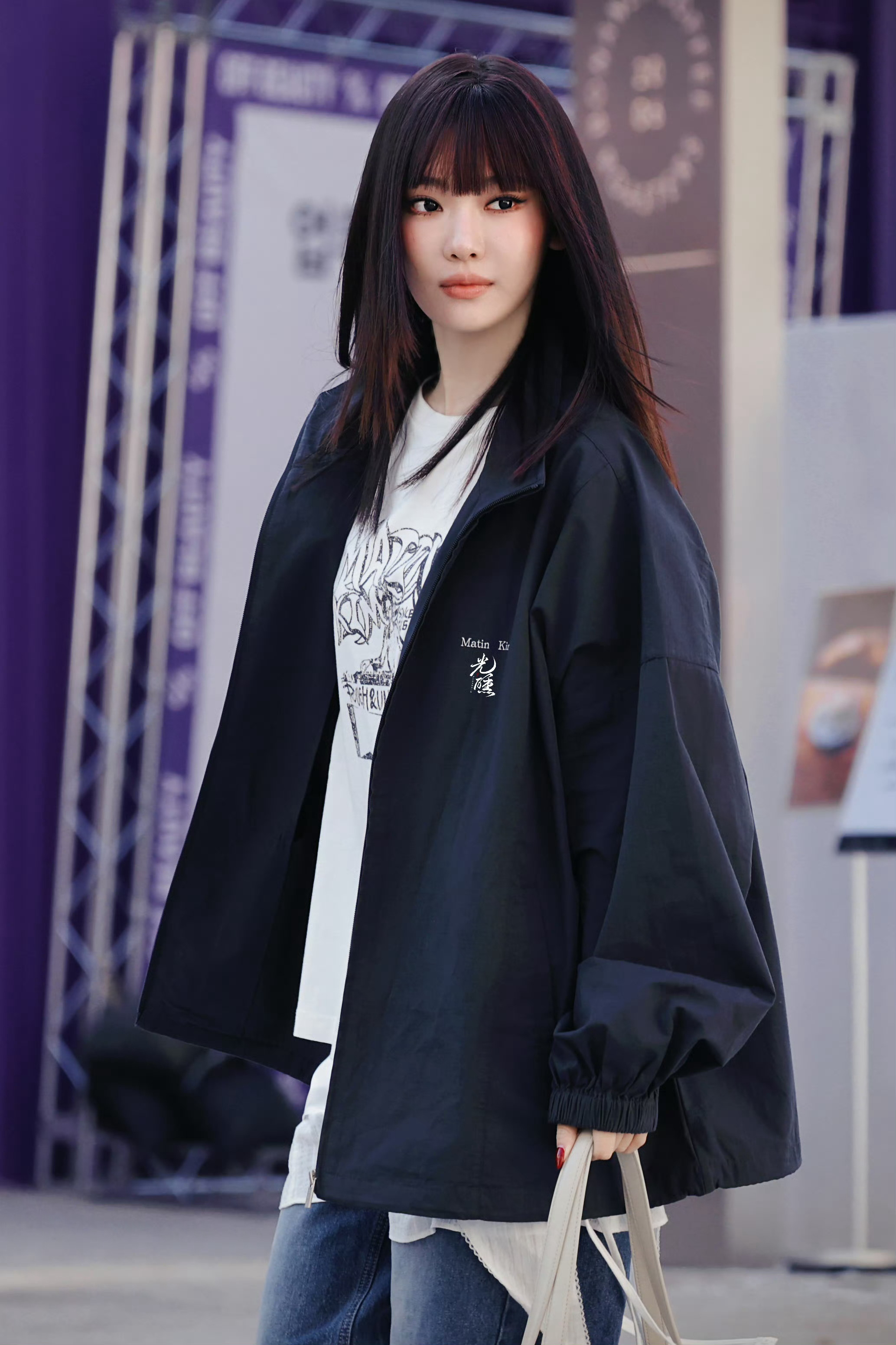 梓渝 × 穿搭营业照上新,身着 Undercover 印花图案白衬衫出镜,干净简