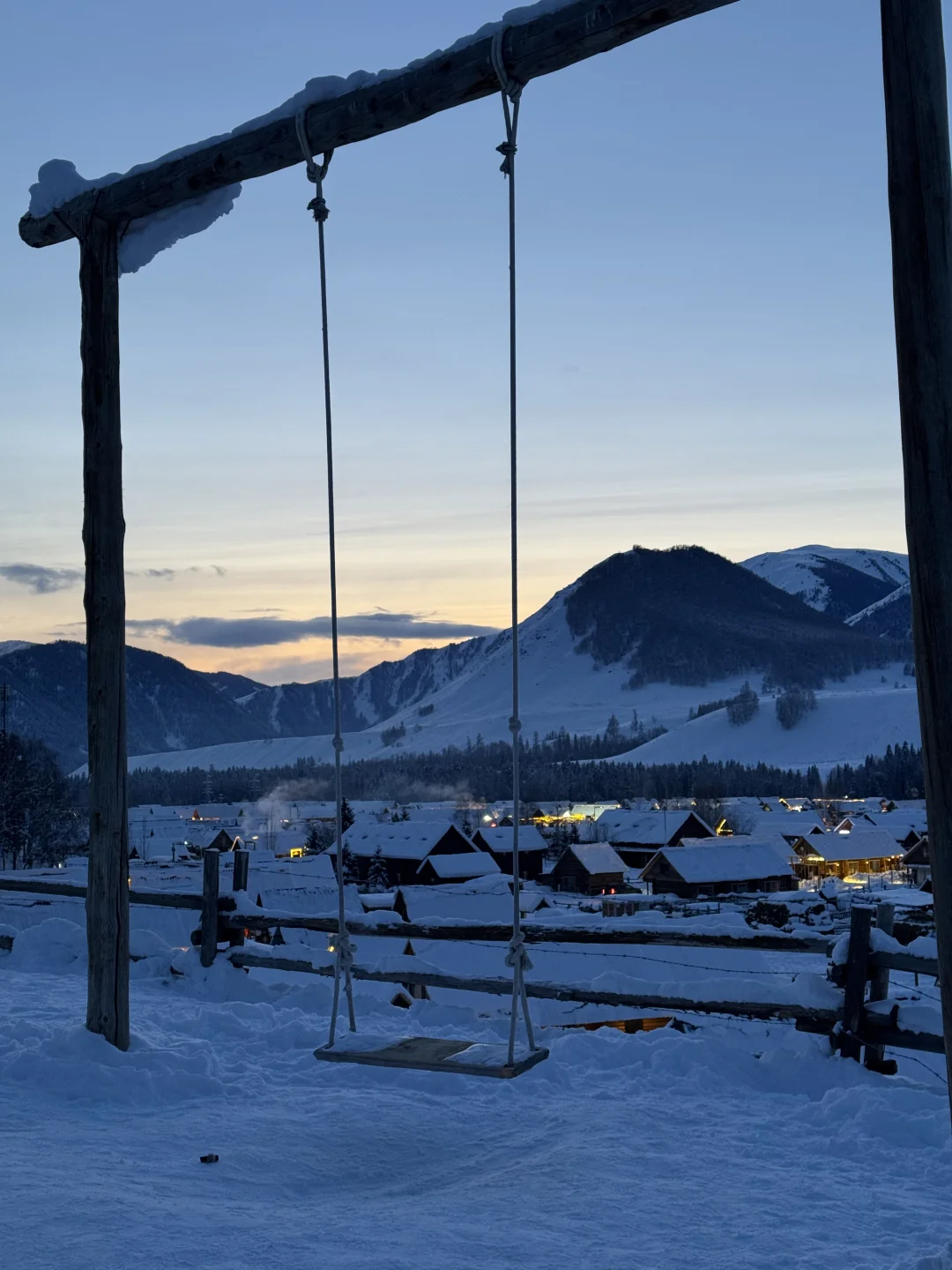 连秋千上都缀满了晶莹剔透的冰晶❄️。