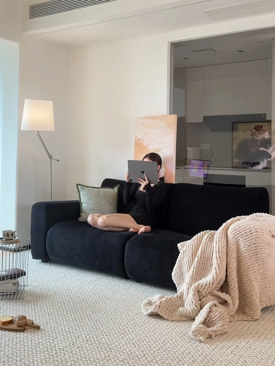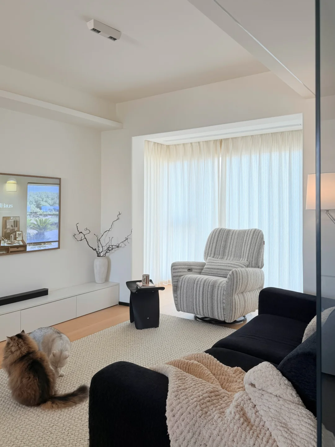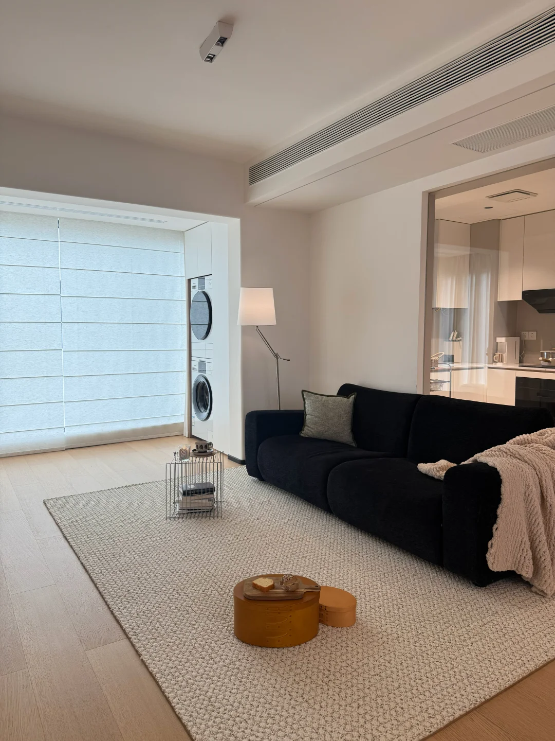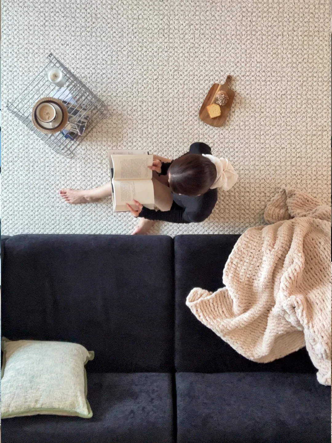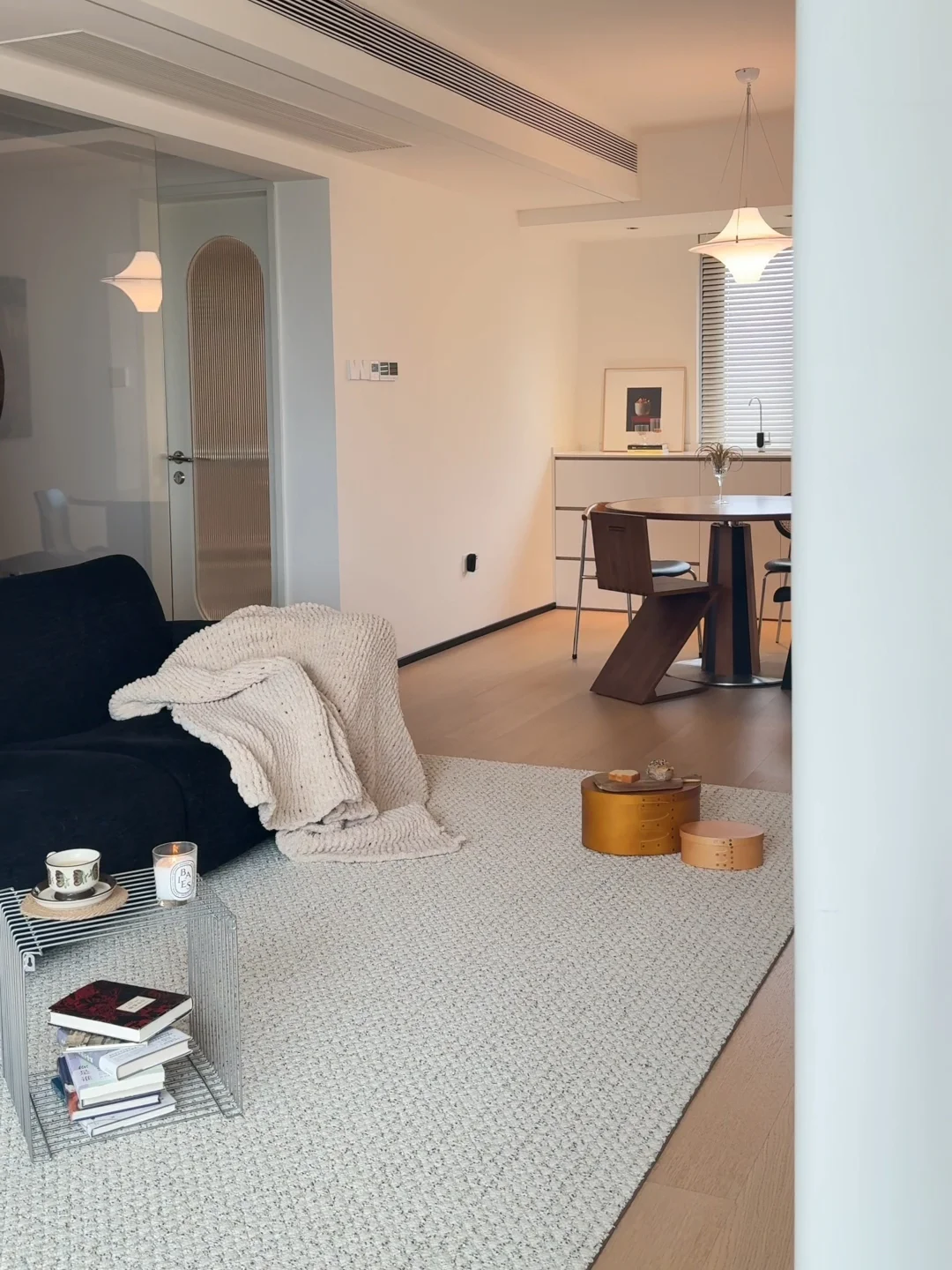 2️⃣ 尺寸宁大勿小:地毯比沙发区域大一圈,视觉更整体,空间也更显沉稳与包裹感。