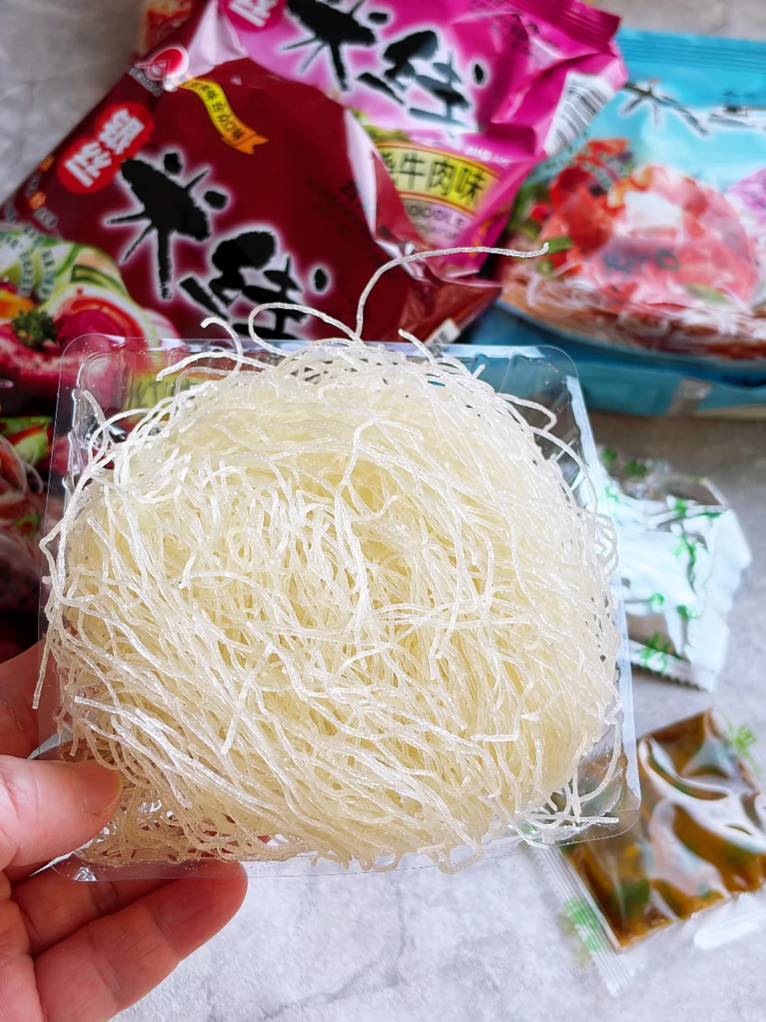 都知道米粉好吃,但需要好长时间才能煮熟。自从发现“合众”米粉后,天天都想来一包。不管是家庭装的台山排粉,还是港式速食米线,细如银丝,非细炸,0添加剂,煮3-5分钟就软乎了。放入速食款的配套多口味料包,或者自己调的汤料,米线吸汤入味,劲道弹口,一碗入肚,太舒坦了。