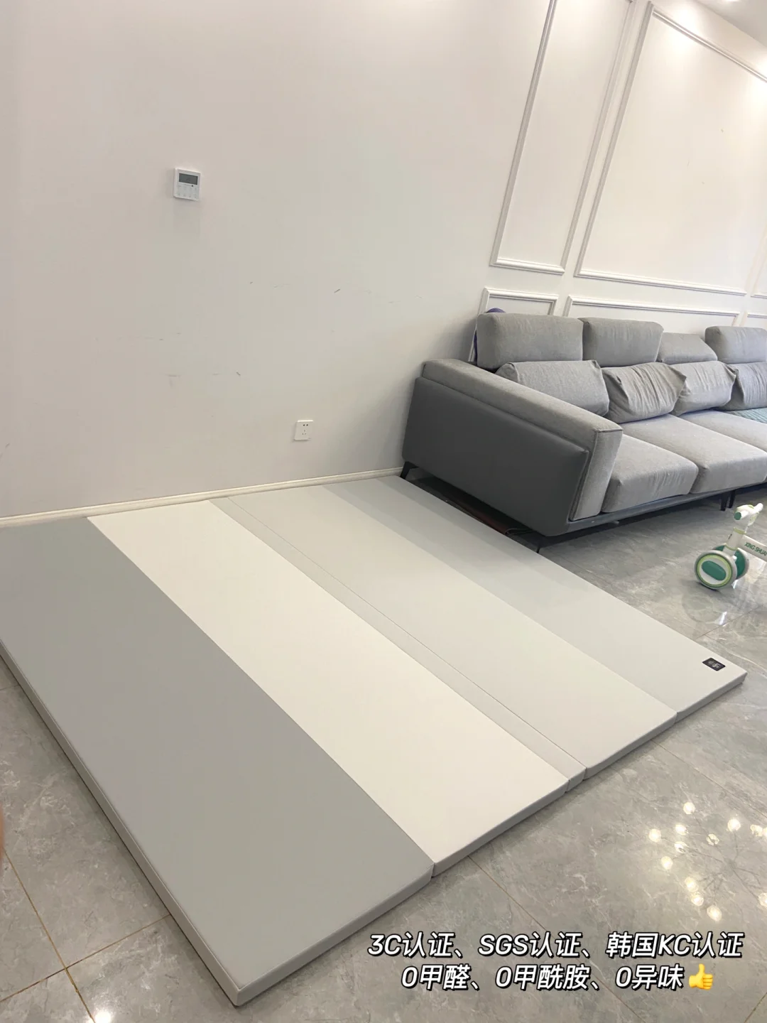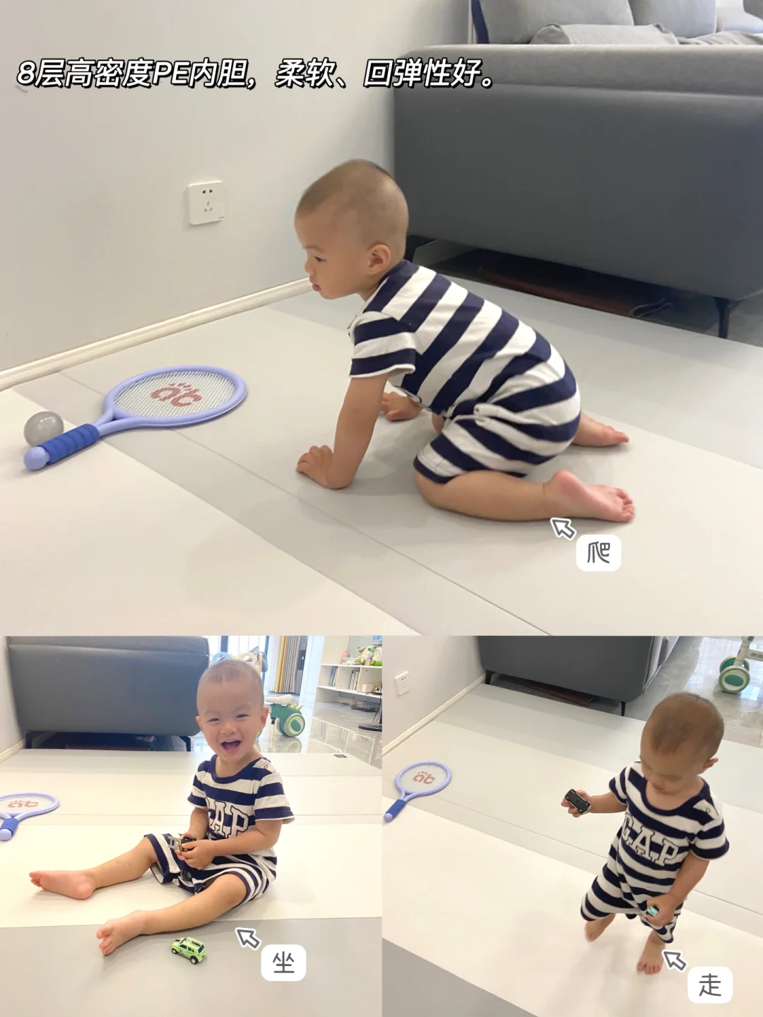 我家用的是lunastory爬行垫,是个韩国品牌,小树苗学爬时入的,通过了3c认证,sgs认证和韩国KC认证,而且没在毒垫子榜单上!很放心~我选的灰白拼色、PU表层,很有质感、很耐磨,平时的一些污垢,湿纸巾就可以擦掉,很好打理。4cm厚度,ixpe环保材质,柔软度、回弹性很好,经常摔倒也没有受伤。无缝折叠款式、好打理不会藏污纳垢,现在宝宝大一些了,折叠起来也不占地方~家长们可以冲‼