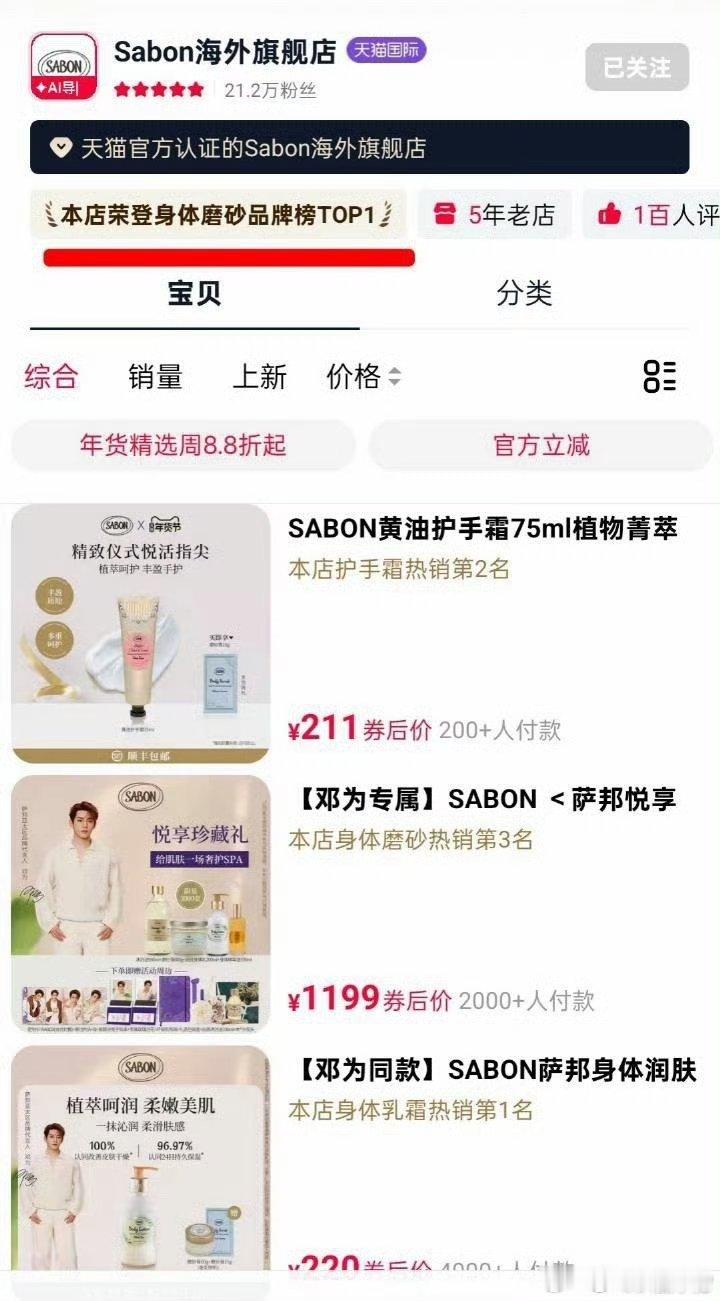 邓为的商业价值太顶了,新商务SABON官宣24小时SABON同比增幅8049%,同时登上身体磨砂热销品牌榜TOP1!🐮