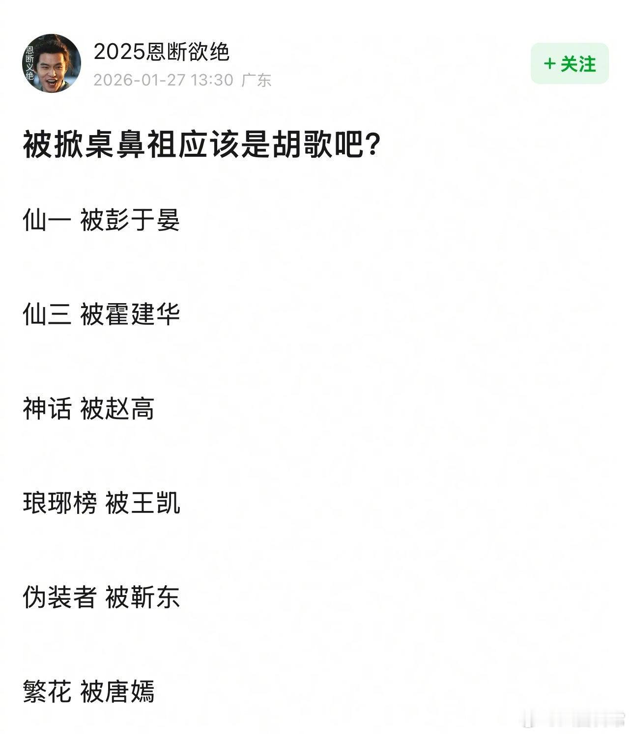 啊?胡歌没被掀过桌吧