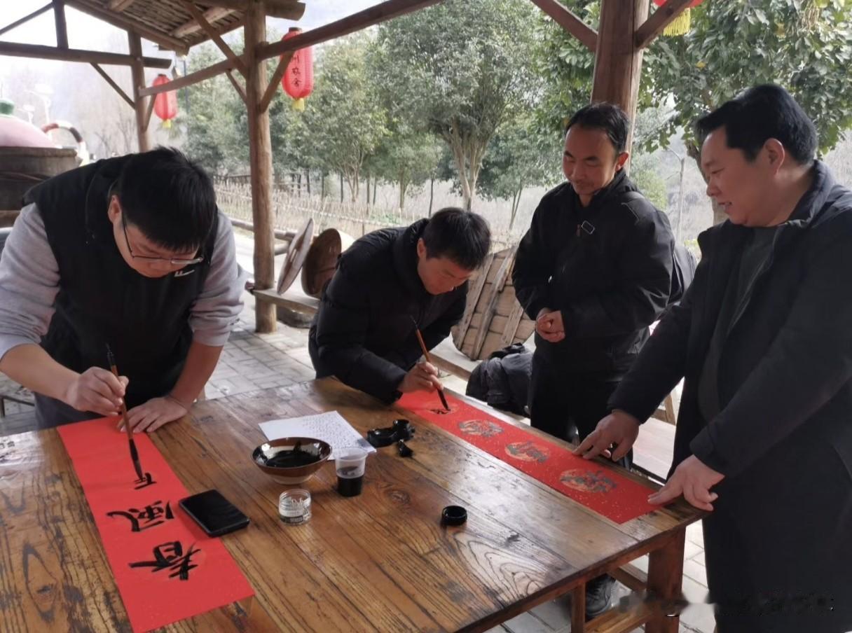 对联遇上拦门酒,安康金州农舍这花式腊八节实在是太给力了。 喝过拦门酒,吃一碗热乎乎的腊八粥,然后再看一场精彩纷呈的演出,还可以观看一下书法家们的泼墨,一副对联也到手了。这就是金州农舍的腊八节,策划的真好,各方配合的也真好。 美美的美食,饱了口福,没想到还有精神大餐,过年用的红红火火的对联也有了。 物质享受加精神享受,这样有趣的腊八节,你喜欢吗?