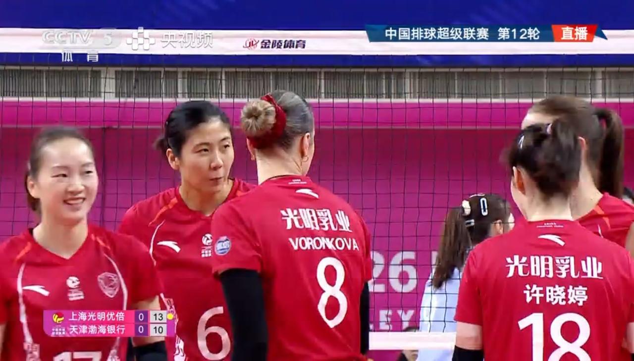 【女排超级联赛】第十二轮:上海——天津 实时战况: 1月27日晚20:00时,全国女排超级联赛常规赛第十二轮上海——天津的比赛在上海队的主场开打。第—局开始1:0,2:0上海领先。2:1上海发球下网。3:1,3:2,仲慧扣球下网。4:2,仲慧。5:2,发球得分。5:3,6:4,7:4,上海外援。7:5,8:5,8:6,天津快攻。9:6,天津发球下网。10:6天津暂停。13:10,13:11,14:11,15:11,天津二次暂停。16:11,17:11,上海领先。18:11,19:12,上海领先。20:12,高意。24:14,上海局点。24:15,24:16,25:16,上海胜第一局,大比分1:0,上海领先! 第二局比赛正在进行中……