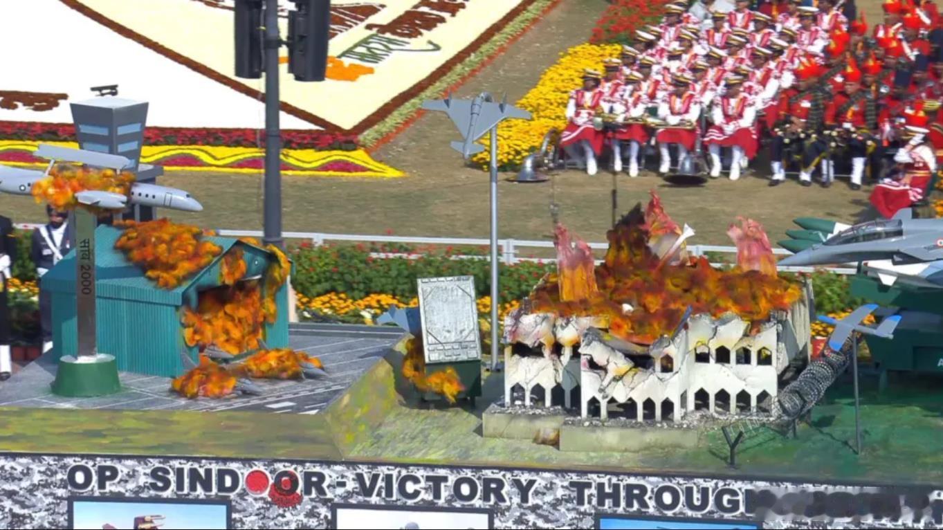 印度阅兵式继续宣扬“朱砂行动”印度赢麻的伪史。居然有脸展示什么歼-10在机库被命中的模型。不知道以后会不会有大V出来岁月史书?我估计是有可能的。