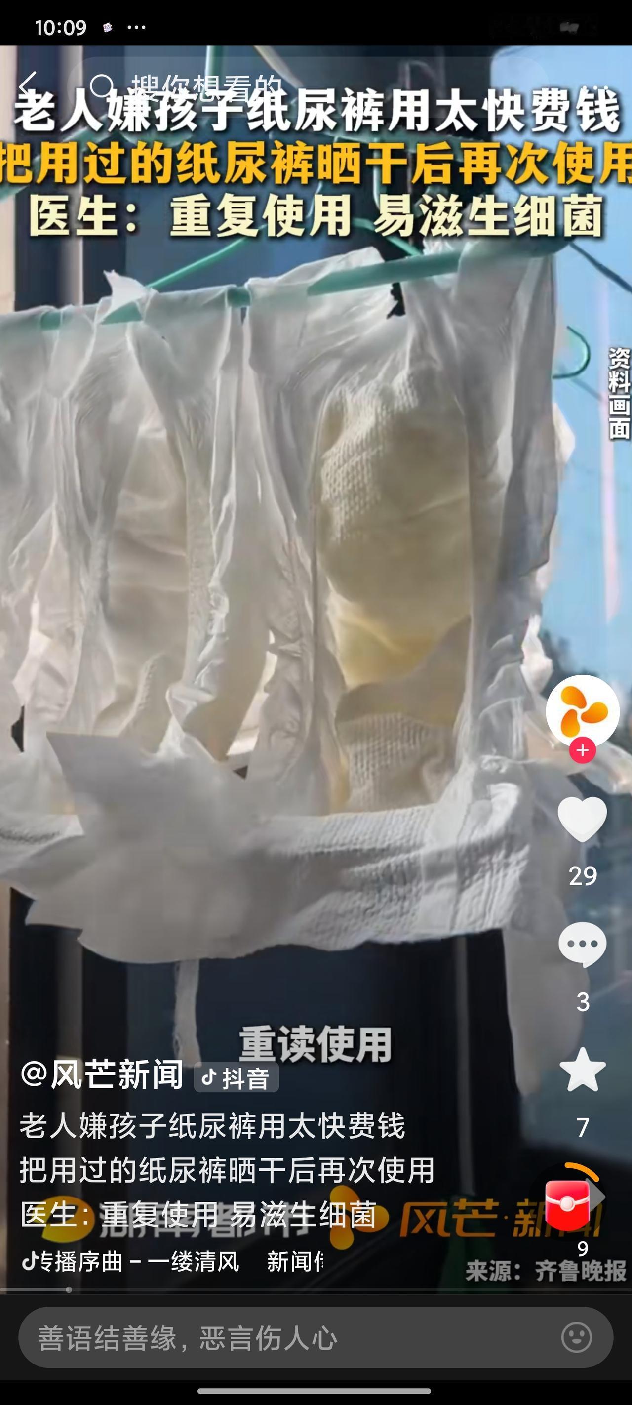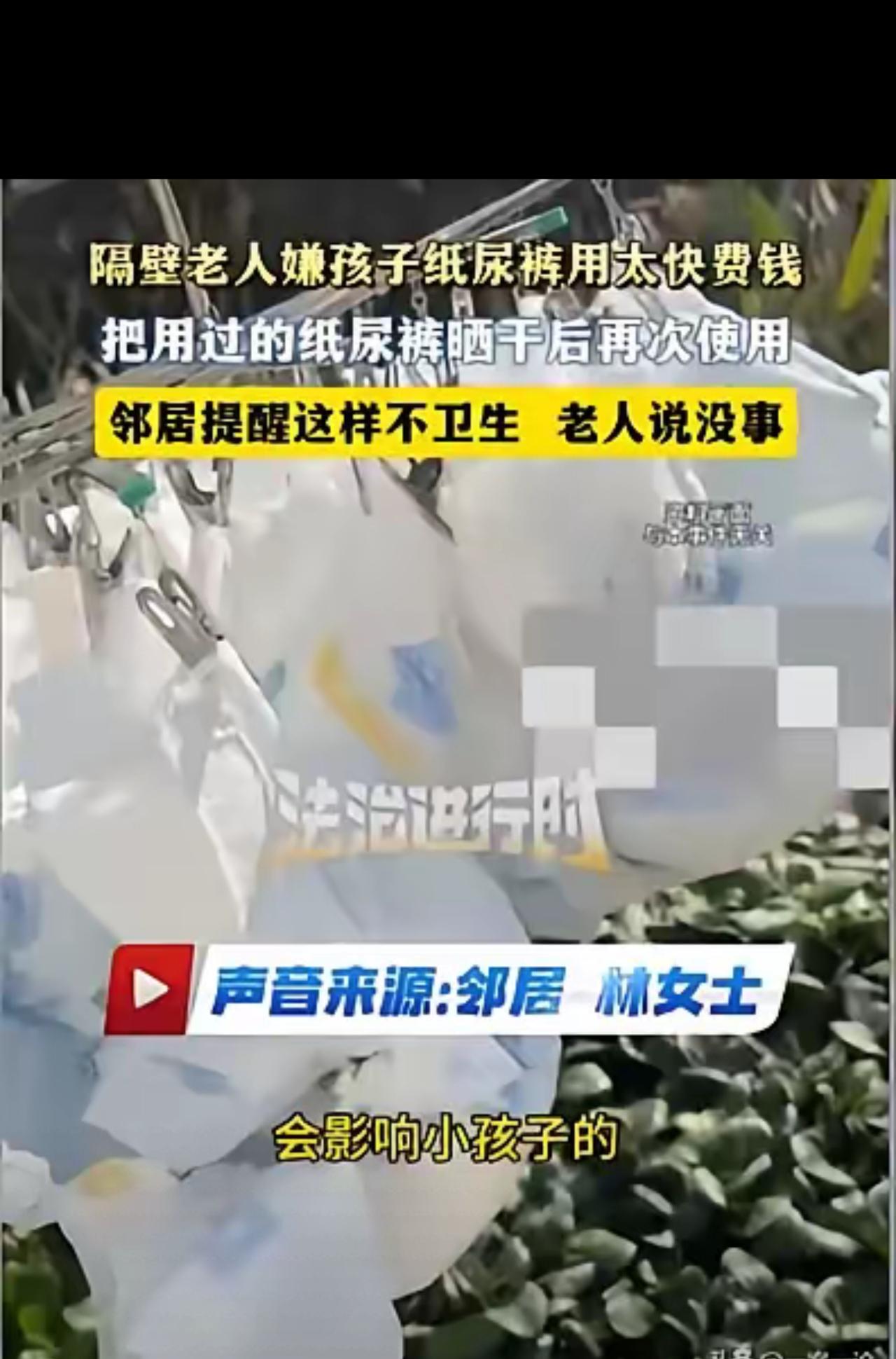 😱活久见!福建宁德这波操作真的刷新三观,为了省几个纸尿裤钱,居然拿孩子的健康不当回事,邻居看了都直呼膈应到不行! 临近春节宁德天天下雨,家家户户洗的衣服堆成山,天台晒衣区本就挤得慌。结果有住户发现,隔壁老人把孙女用过的一次性纸尿裤,带着粪便污渍直接挂在天台晒,连冲都不冲、洗都不洗,更过分的是,还直接夹在别人家的干净衣服中间,这画面想想都头皮发麻! 住户好心提醒老人,这样重复用纸尿裤对小宝宝的身体不好,结果老人就一句话,孩子一天拉太多,买纸尿裤太费钱,扛不住,任凭怎么劝,还是天天照晒不误,油盐不进的样子属实让人没辙。 这事儿一出,网友们也炸开了锅👇 有网友怒怼:省钱也得有底线吧?娃的健康是天大的事,这钱省得也太糊涂了,纯属捡芝麻丢西瓜! 也有网友吐槽:隔着屏幕都觉得恶心,自己家怎么折腾就算了,占公共晒区还混挂邻居衣服,太没分寸感了! 还有心疼娃的网友:小宝宝皮肤嫩、免疫力又差,那纸尿裤上的细菌根本晒不死,红屁股、肠胃感染都是轻的,真出大事后悔都晚了! 甚至有网友支招:真要省,选平价纸尿裤、用布尿裤都比这强,何必干这种得不偿失的事? 说实话,我看了这事儿也是又气又心疼。老一辈过日子精打细算的习惯我能理解,毕竟苦日子过来的,总想能省则省,但节俭绝对不能变成抠门,更不能拿孩子的健康当赌注啊! 一次性纸尿裤本就是即用即扔的,阳光暴晒根本杀不死粪便里的致病菌,小宝宝的肌肤和肠胃都娇贵得很,一旦被感染,遭罪的是孩子,到时候去医院花的钱,可比买纸尿裤贵上十倍百倍,这账怎么算都不划算。 而且老人这做法也太不顾及旁人了,雨天晒衣服本就不容易,把这种带脏污的东西和别人的干净衣服挂一起,换谁遇上都得膈应,基本的边界感真的太重要了。 大家咋看这事儿? 你觉得老人的节俭能理解吗? 遇上这种邻居该怎么处理才好?