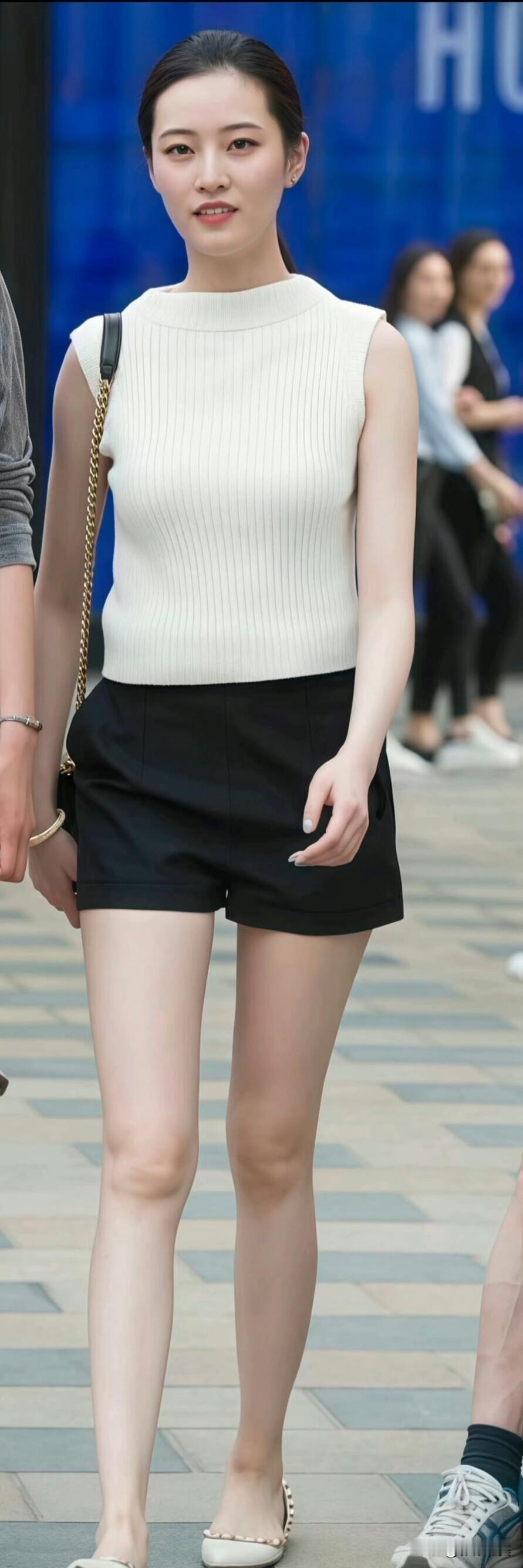 简约的无袖针织衫搭黑色短裤,走在街上自带清新气质,这就是夏日氛围感穿搭的正确打开方式。
