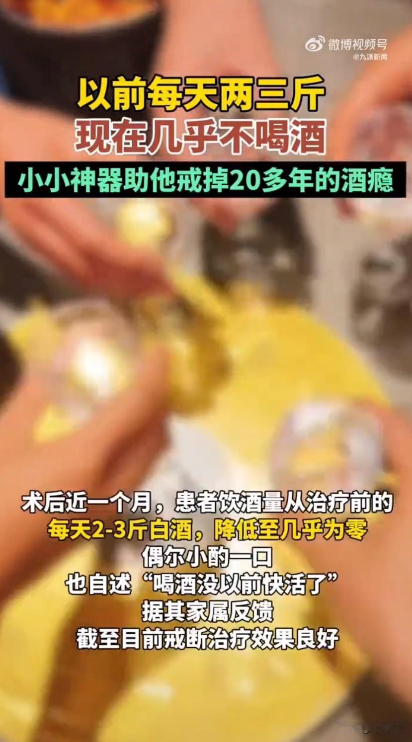 最近武大人民医院的一个戒酒案例直接火了,一名被酒瘾缠了二十年的患者,做了个十分钟的微创手术植入戒酒芯片,居然真的把酒戒了,这波操作直接让网友直呼太神奇。这位患者之前酒瘾大到离谱,每天都要喝两三斤白酒,妥妥的“老酒蒙子”,估计身边人没少为他的身体和酒瘾操心,试过的戒酒方法大概率也不少,可就是没效果,结果这小小的芯片一植入,术后近一个月几乎滴酒不沾,偶尔尝一口还说喝酒没以前那股快活劲了,家属也说现在戒断的效果特别好,这反差直接拉满。 就在大家都觉得这酒瘾没法治的时候,医生给他推荐了“戒酒芯片”植入术,谁知道这小小的芯片竟成了破局关键。这台手术全程才十来分钟,局部麻醉下在肚子上开个一厘米的小口,把芯片埋进皮下就完事了,做完之后对日常工作生活几乎没啥影响,术后四小时就能起效,这效率也是没谁了。很多人好奇这芯片到底是啥黑科技,其实它根本不是传统的电子芯片,而是装着盐酸纳曲酮的缓释植入剂,埋进身体后会慢慢释放药物,能在体内持续发挥作用一百多天,核心就是阻断酒精给大脑带来的快乐感。 简单说,咱们喝酒觉得爽,是因为酒精会让大脑分泌多巴胺,而这芯片里的药物会占住多巴胺的受体,让喝酒的人尝不到半点快感,偶尔喝一口不仅没滋味,甚至还会觉得恶心,这位大叔就直言“喝酒没以前快活了”,自然也就没了喝酒的欲望。术后近一个月,大叔的饮酒量直接降到几乎为零,偶尔象征性抿一口也提不起兴趣,家属说现在戒断效果特别好,这变化简直天差地别。 医生也出来科普了这一技术,说它最大的好处就是解决了传统口服药容易漏服、效果不稳定的问题,能大大提高戒酒的依从性,对重度酒精依赖者来说,算是多了个靠谱的选择。不过医生也特意提醒,这芯片可不是啥一劳永逸的戒酒神器,它只能解决生理上不想喝酒的问题,而酒精依赖说到底还是种慢性脑病,除了生理依赖还有心理依赖,想要彻底戒酒,还得配合后续的心理治疗,加上家人的陪伴和支持,才能从根上解决问题。 不少网友看完都表示这技术太实用了,终于给长期酗酒的家人看到了希望,也有人好奇这芯片的适用人群和价格,还有人调侃这芯片要是普及了,那些酒桌文化怕是要变天。其实说到底,这芯片的出现只是给戒酒提供了一个新的辅助手段,真正的戒酒,还是得靠自己的决心和身边人的支持,毕竟戒掉的不只是杯中酒,更是重新找回对生活的掌控感。戒酒 来源:九派新闻