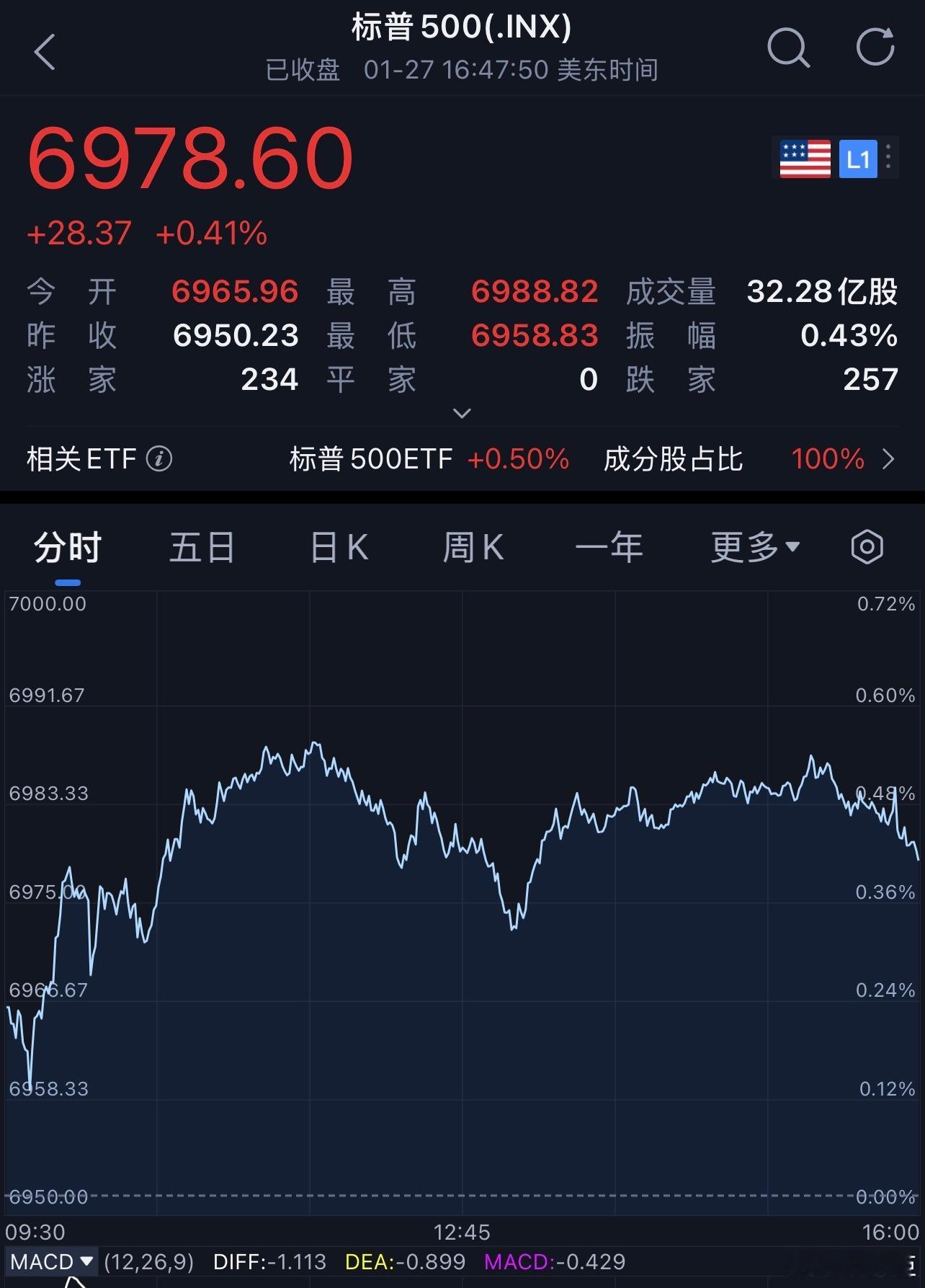 每天早起打卡许文臣许文臣 老板(ba)们早安,打卡养铁咯昨夜美股三大指数涨跌不一。受科技股和芯片股提振,标普500指数收于新高,联合健康股价大跌,拖累道指收低。截至收盘,标普500指数涨0.41%,报6978.60点,刷新了1月12日创下的收盘纪录;纳斯达克综合指数涨0.91%,报23817.10点;道琼斯指数跌0.83%,报49003.41点。中概股方面,纳斯达克中国金龙指数涨0.48%。黄金、白银继续猛猛涨!!!金价银价 金价银价巨震黄金白银高位跳水黄金白银急涨又急跌原因