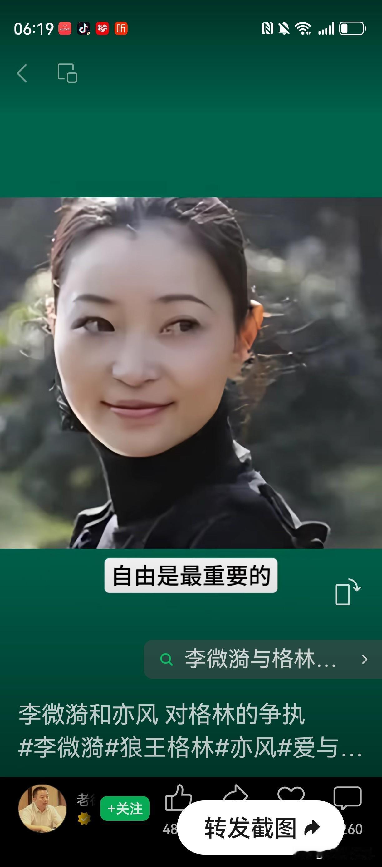 因格林结缘,李薇漪和亦风也因为《重返狼群》大火,但他们的故事有美好的开头,却没有了结局。 明明他们很合拍,伴随格林成长的日子。相依相伴,虽苦也很甜。 一个卖掉成都的房子,一个出售自己的工作室,来到茫茫草原,面对高原反应和气候恶劣等各种不利条件,他们都坚持下来了。 很多人不明白他们为什么会分开?但其实很正常。缘来缘去,原有定数。 当亦风遇到遭遇盗猎者枪口时,先行撤退,李薇漪的心里就有了裂隙,毕竟生死存亡关头,亦风的做法可以理解,但临阵脱逃,这对爱情是致命的打击。 想起来李薇漪真是太了不起了,可是为了格林,她没有结婚,也没有自己的孩子,确是任何普通人都做不到的伟大。 而和亦风也在日复一日的相处中,产生了很大的分歧—— 李微漪将自由置于生命之上,坚持让格林重返狼群。但亦风更看重生存与安稳,觉得格林好好活着比什么都重要。 如今的李微漪,依然在为草原的狼群奔走说话,她大声疾呼,不要把狼洞变成直播间,给草原上每一个格林充分自由…… 这样的李薇漪怎么不让人尊敬佩服?所以凡是指手挖脚妄加指责的人,请问你们有多少爱心又为草原的格林做了什么?