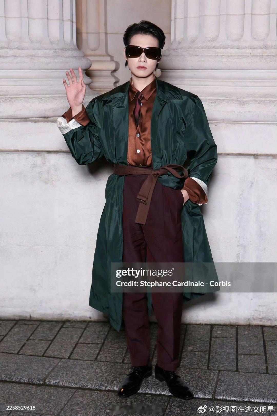 魏大勋扛住了G社镜头魏大勋绿色风衣墨镜造型魏大勋绿色风衣配墨镜帅出新高度,G社生图怼脸抗打,气场全开惊艳巴黎街头