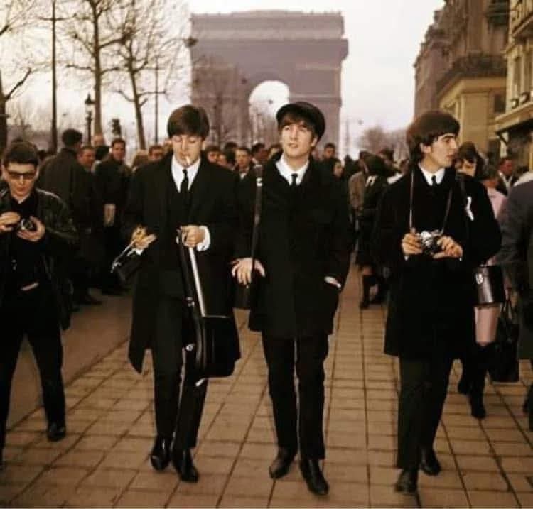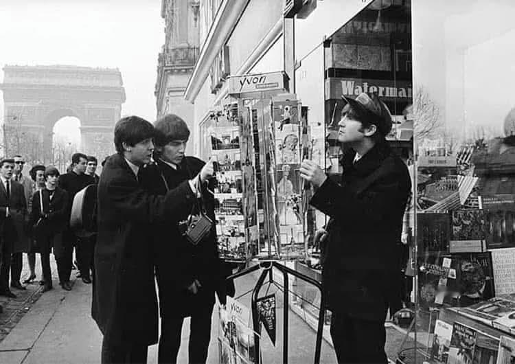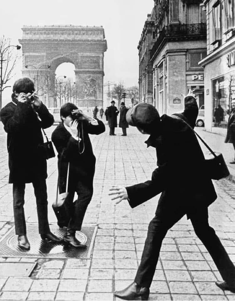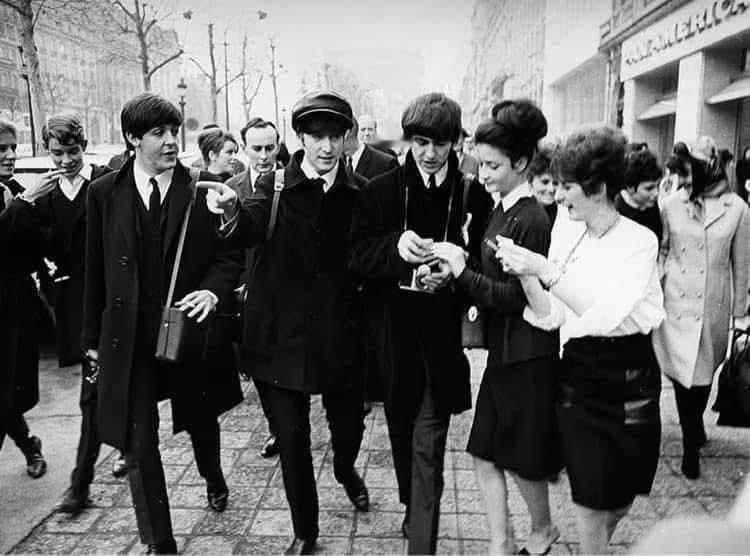 【来自投稿】1964年,披头士乐队在英国媒体的陪同下,在香榭丽舍散步。