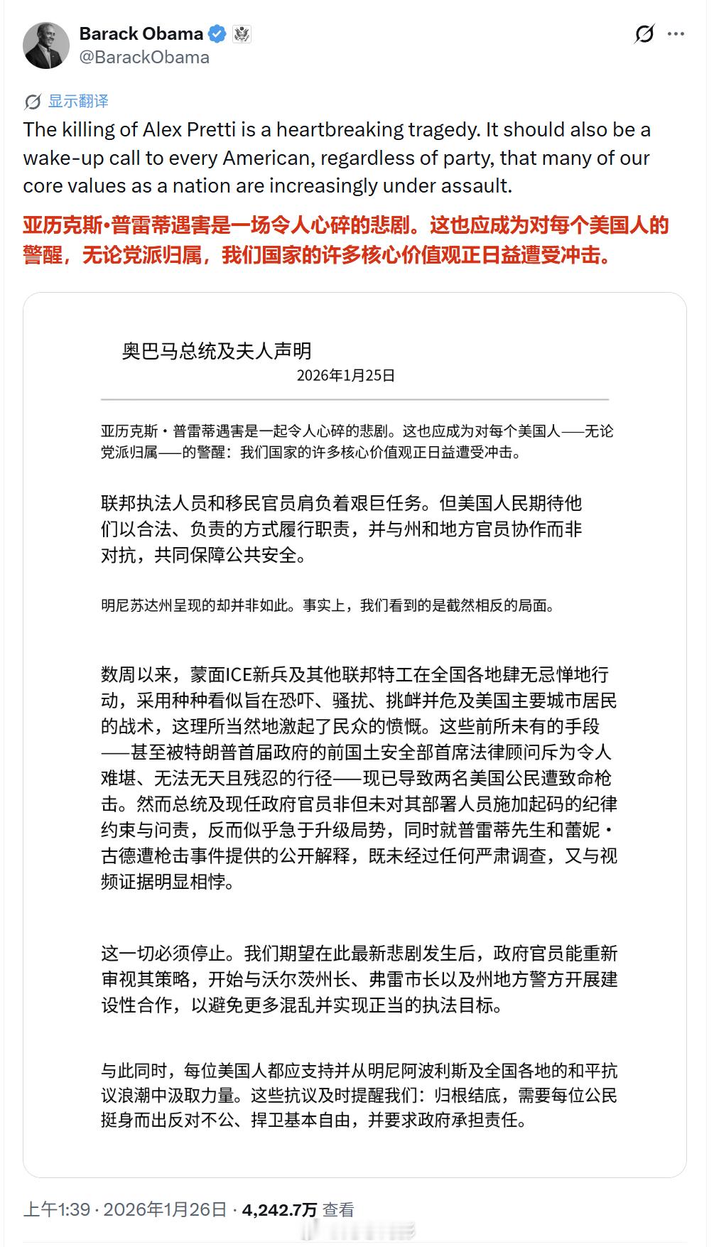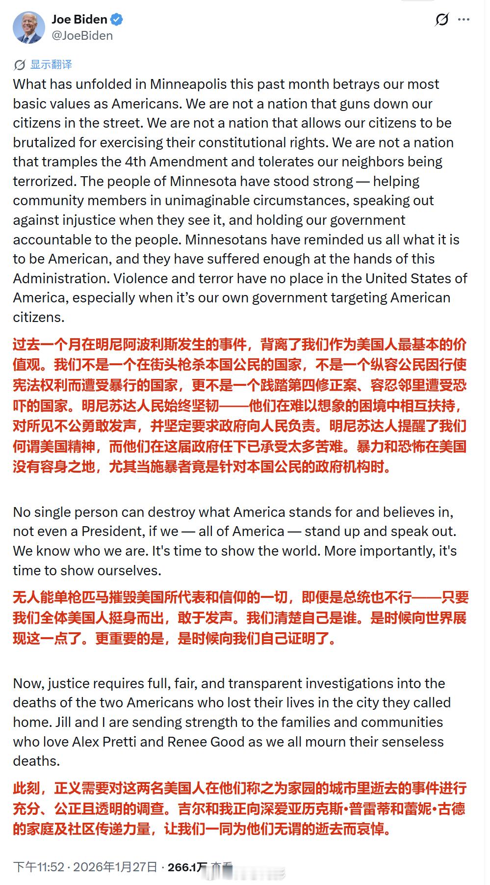 美国前总统反对美国现政府 美国前总统拜登,奥巴马,克林顿分别就ICE杀人事件发表声明,以下是他们发表的内容,就差呼吁民众“揭竿而起”了。仿佛在他们任内从没发生过这类事情似的。海外新鲜事