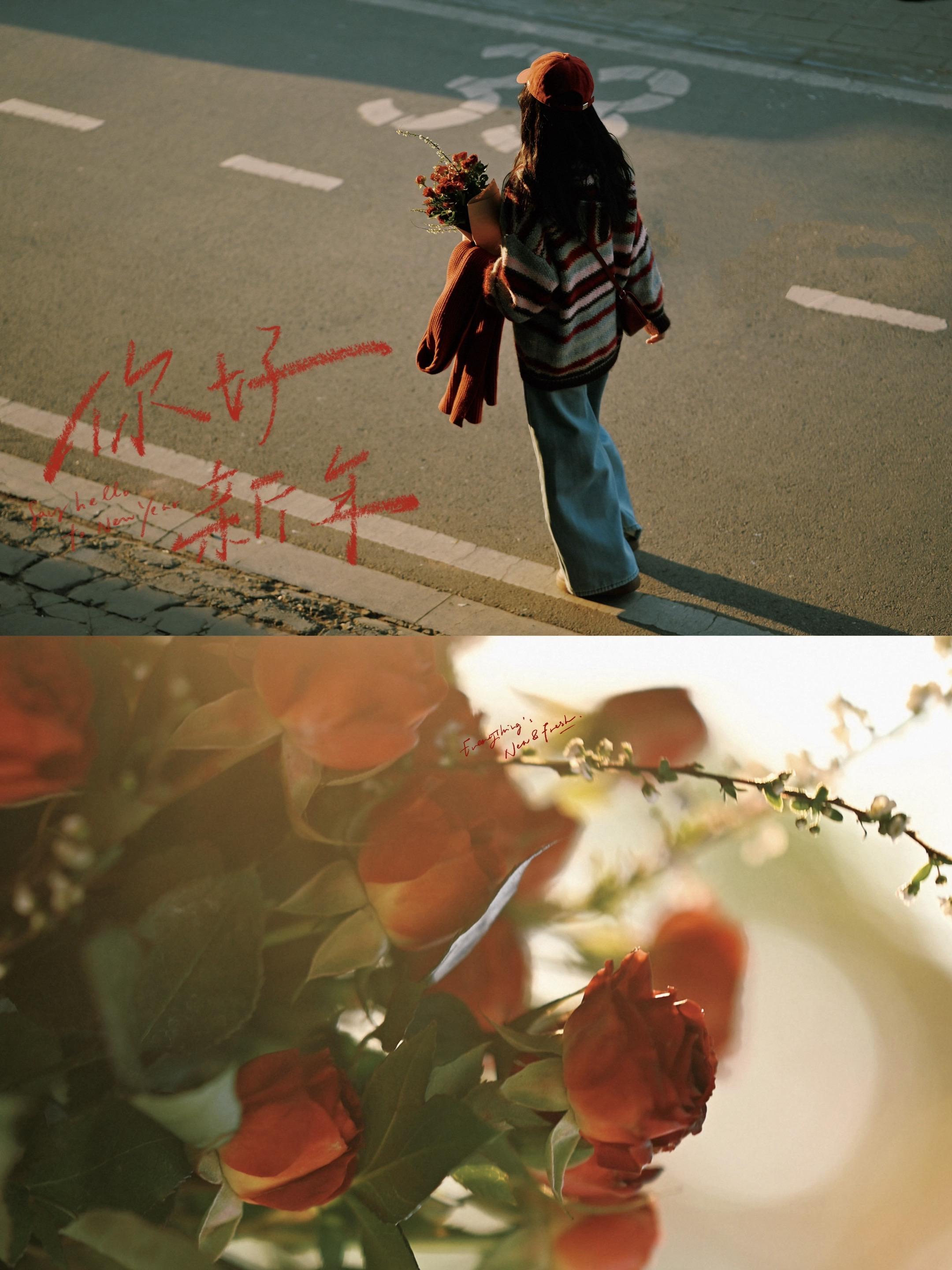 新春氛围文艺电影感拍照|🌹🎬。近春节 去花市的次数也多了起来 买一束鲜花🌹增加新春氛围 冬日日落时分的街道 敲好拍 随手拍出文艺电影感