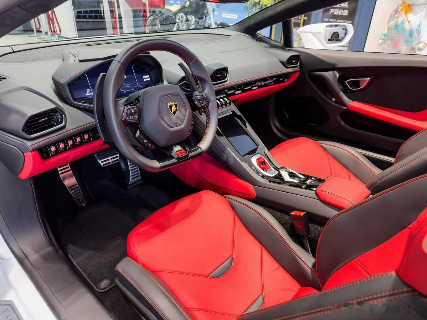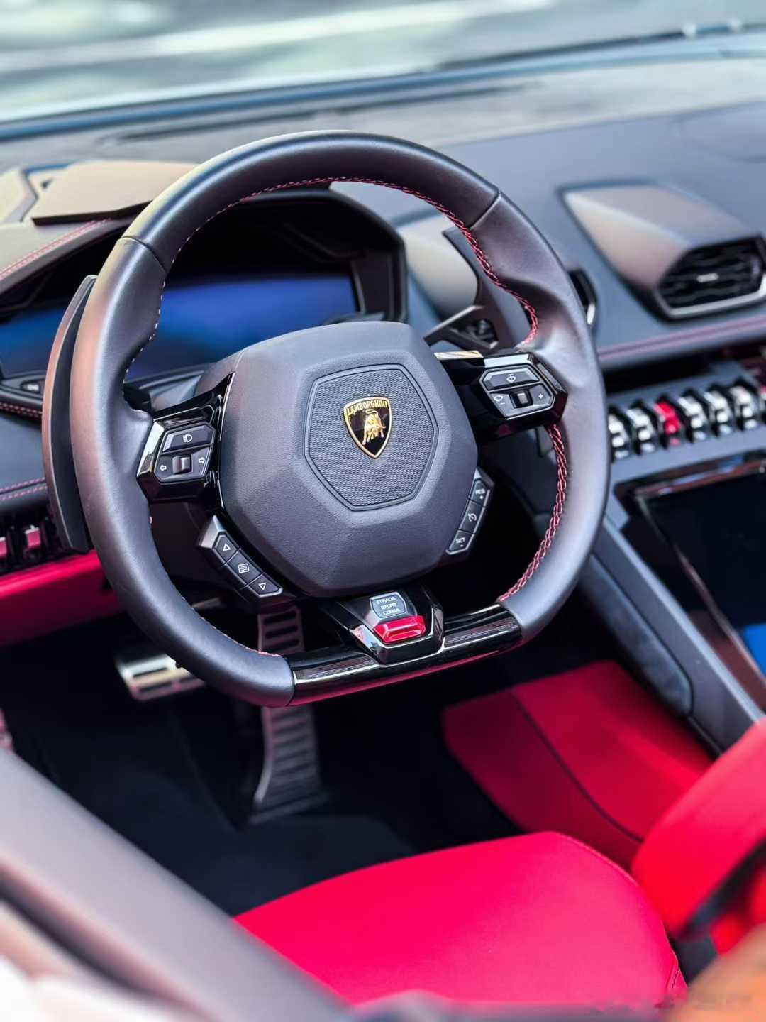 兰博基尼 EVO spyder 完美升级升级Tecnica,进阶JDC钛合金排气、配置:生活方式套件,20寸钻石切割轮毂,红色卡钳,亮黑色时尚套件,多功能方向盘,后视摄像头,CarPlay等配置
