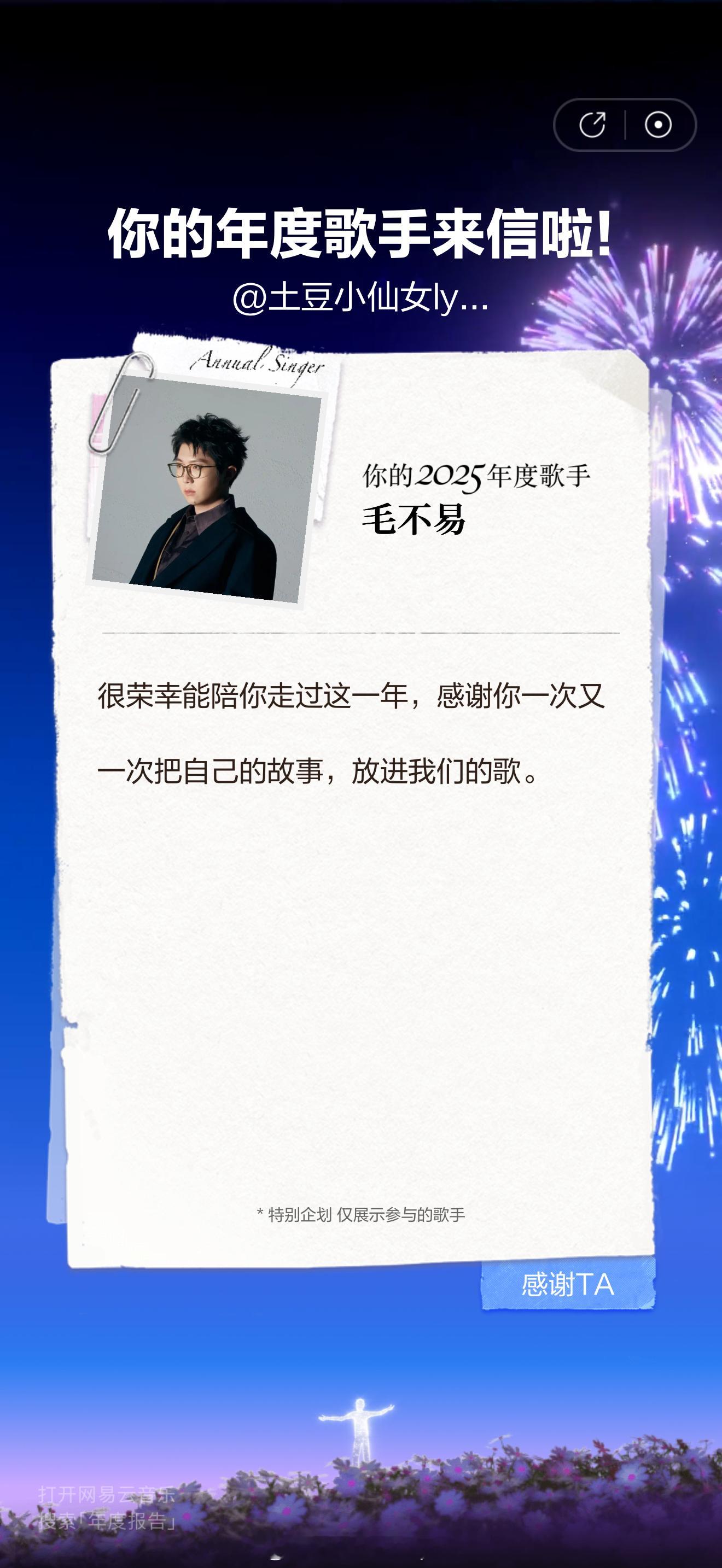 每次见面都感叹还是太远眼睛不够用耳朵也不够用毛不易