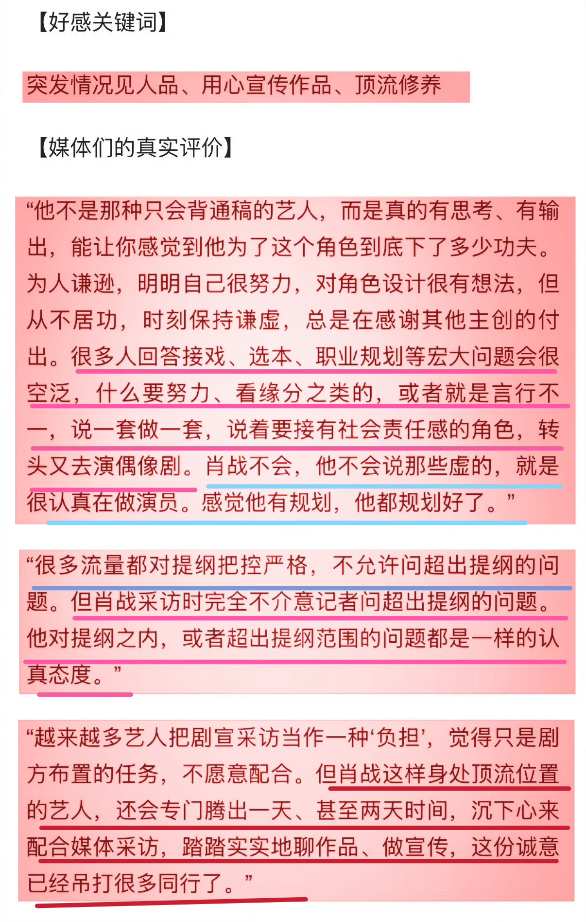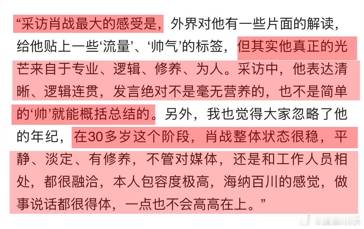 微博之夜肖战2025媒体好感艺人top1肖战是媒体眼中的满分男媒体们对肖战的真实评价:➤“肖战不是那种只会背通稿的艺人,而是有思考、言之有物的输出!真诚!➤“肖战身为断层顶流,仍会专门腾出时间配合采访、踏实聊作品做宣传,这份诚意吊打很多同行了。”➤“肖战状态沉稳淡定、修养极佳,待人接物融洽得体,毫无高高在上的架子。本人包容度极高,海纳百川的感觉,做事说话都很得体!”➤“肖战采访中,无论问题是否在提纲内,他都同样认真对待。”➤“拍摄设备突发故障时,他和团队全程耐心等待,没有半句抱怨。微博之夜2025媒体好感度最高的五位艺人王彦霖肖战勾肩搭背