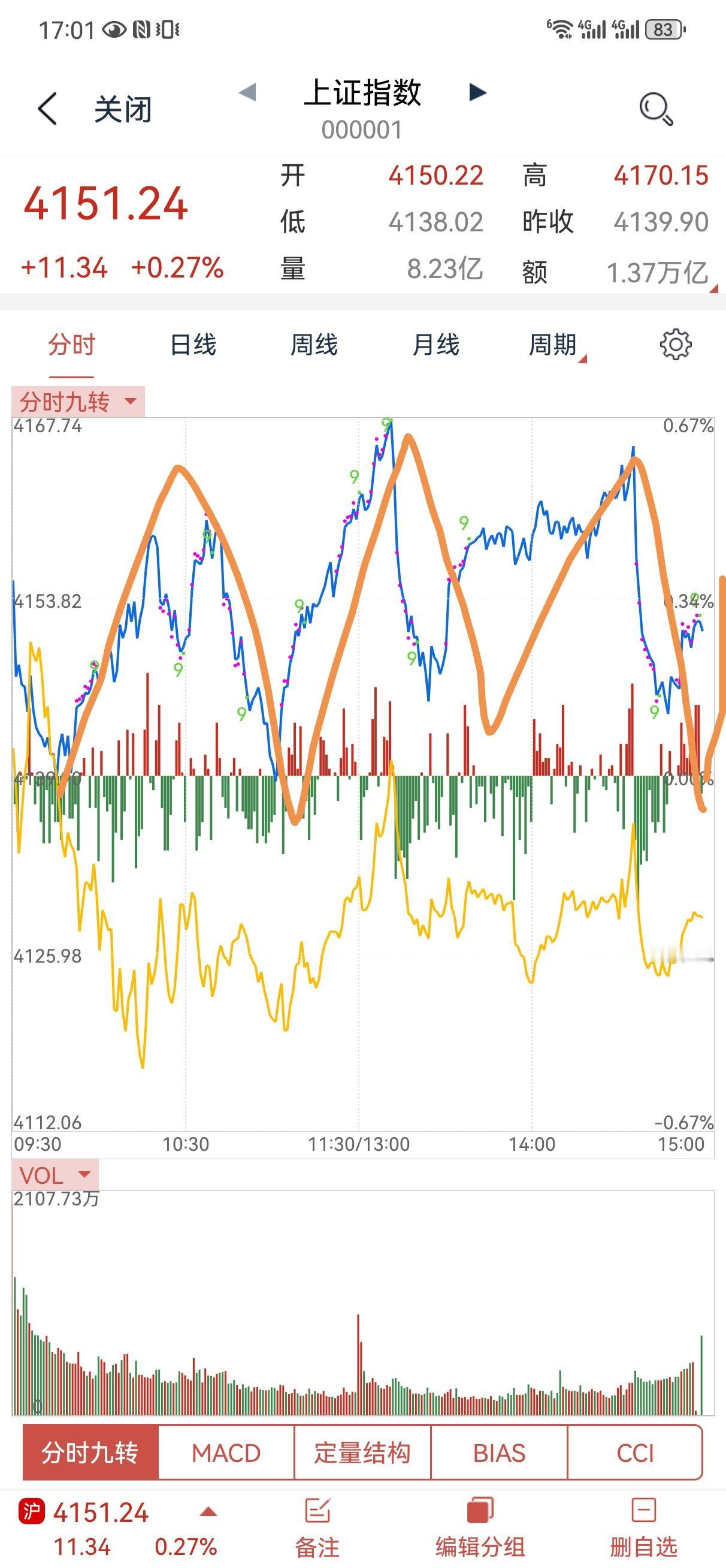 1月29日操盘笔记: 这几天的行情怎么说呢,实在是有点扭曲,你说它跌了吧,指数还是红的,你说它涨了吧,个股大多都是绿的。这两天的套路差不多,猛拉黄金,石油,使劲砸中小盘,眼看着跌多了再用有色或者其他板块修正一下。反正大多数股民是有点悲催的,量化机构是赚得盆满钵满,看看这一天下来的起伏跌宕,都是镰刀啊。慢牛确实不错,但如果只是指数的慢牛,那不要也罢,有这个功夫和精力还不如规范严谨一下规则制度,塑造一个公平合理的交易平台,其他的交给市场自己。最近一直维持在3万亿左右的成交量,这种量能情况下,如果不能加速上涨那还不如来一个调整清洗一下筹码,因为这种模式下,就算每天涨点指数,风险也会越积累越多! 明日操作计划:继续持股。尽管这种走势并不好,但是交易要严谨,没达到标准之前,不要乱折腾,因为乱交易一样有风险!