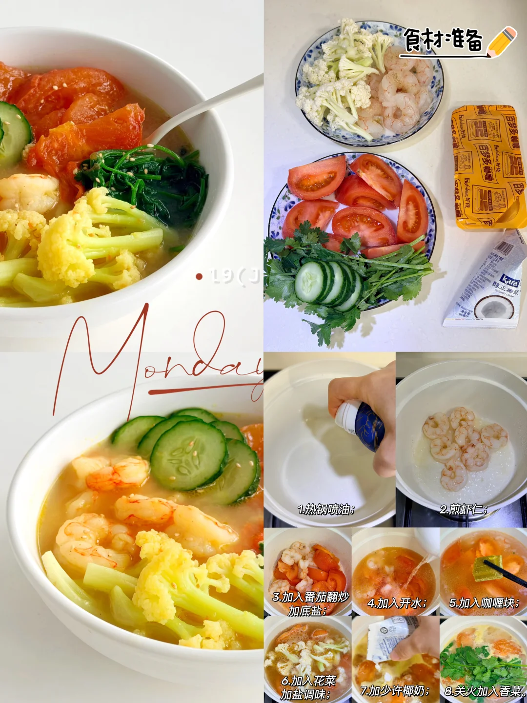 嘻嘻 又凑到了6张图[偷笑R] 食谱合集分享时间开始🧐 . 🧡本期无主食掉称神器晚餐食谱大赏如下: 1️⃣三文鱼头豆腐菌菇芦笋煮; 2️⃣虾滑千张茼蒿菌菇拼煮; 3️⃣番茄肥牛豆腐菌菇拼泡菜煮; 4️⃣牛腩牛筋白萝卜菌菇煮; 5️⃣虾仁花菜番茄香菜咖喱煮; 6️⃣口蘑虾滑冬瓜小海米煮。 —————————————————————————— 喜欢的小伙伴可以点进主页,每一道都有独立篇幅详细介绍😍