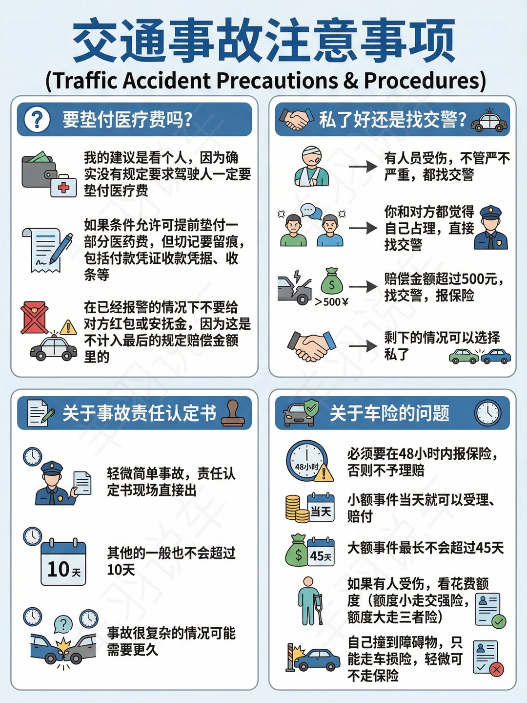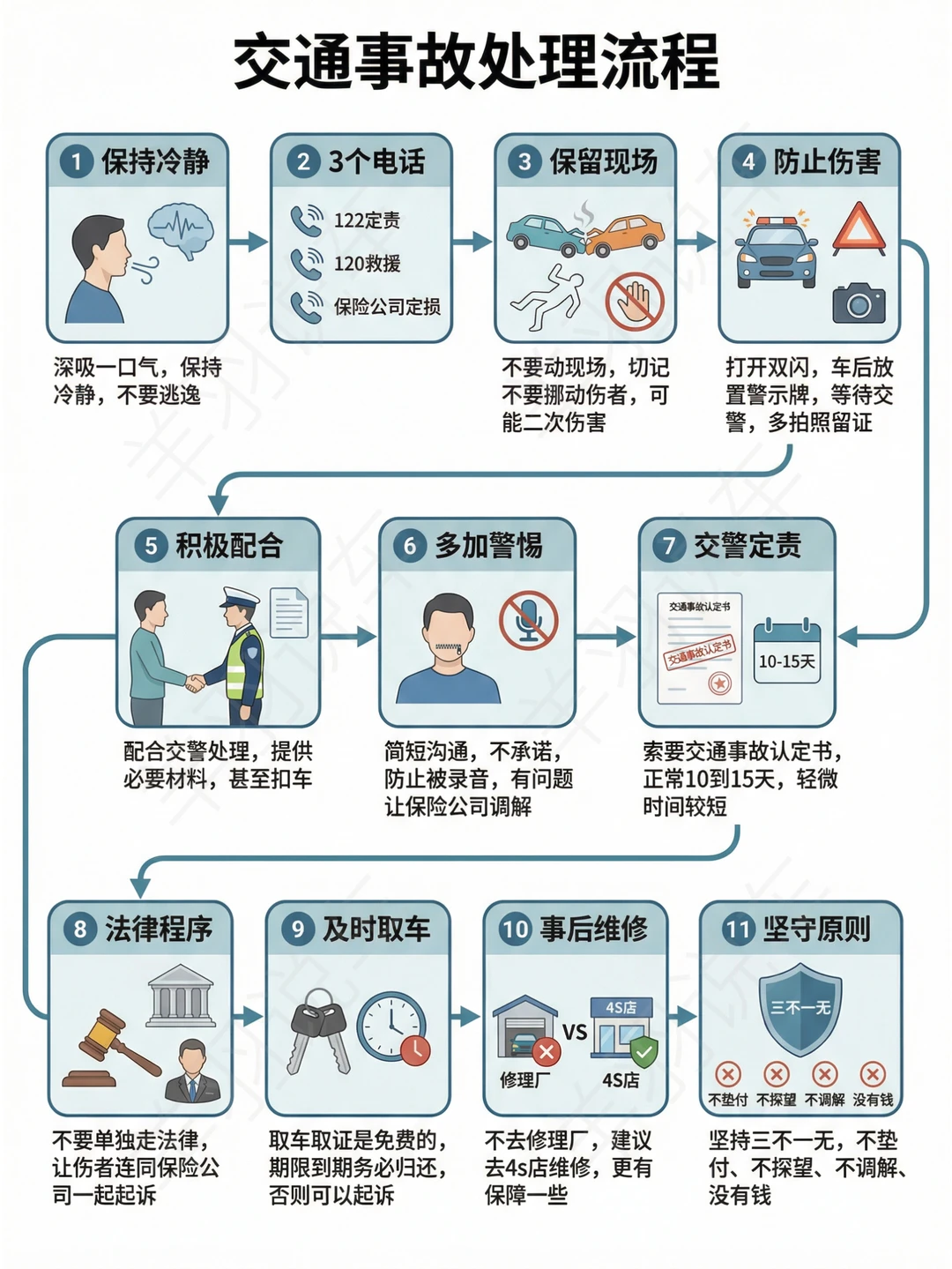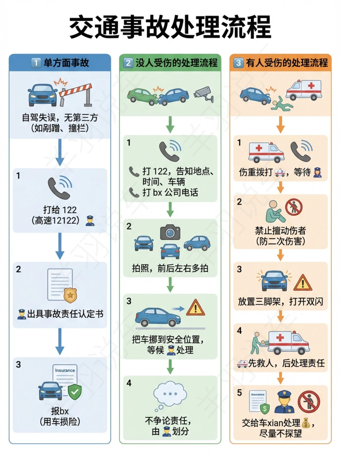很多新手开车 遇到交通事故 手忙脚乱 容易出岔子 有人说我打给老爸 有人说我打给男朋友 但是女生也应该独立起来 遇到突发事件也可以独当一面 比如在不同场景下应该做怎样的措施 比如常用的☎️你是否清楚 比如交通事故的注意事项是否清楚 比如正确处理流程是否清楚 比如哪些事情能做哪些事情不能做 比如车险应该如何使用 不清楚的姐妹,建议留起来 但也希望大家永远用不到