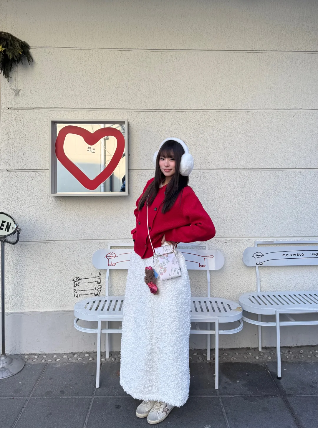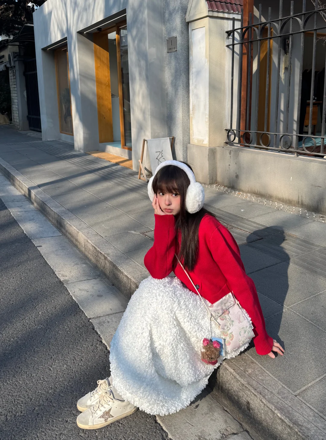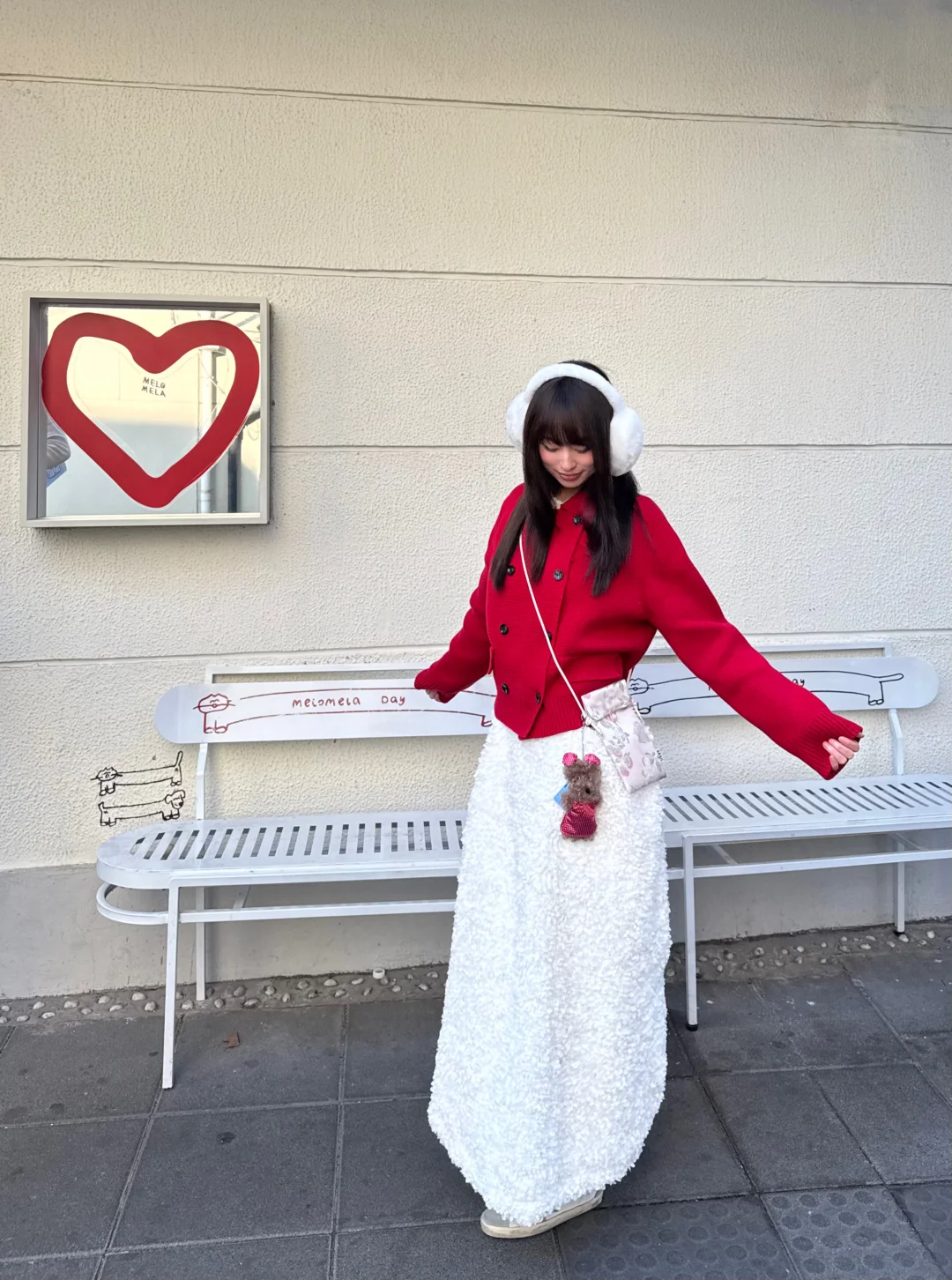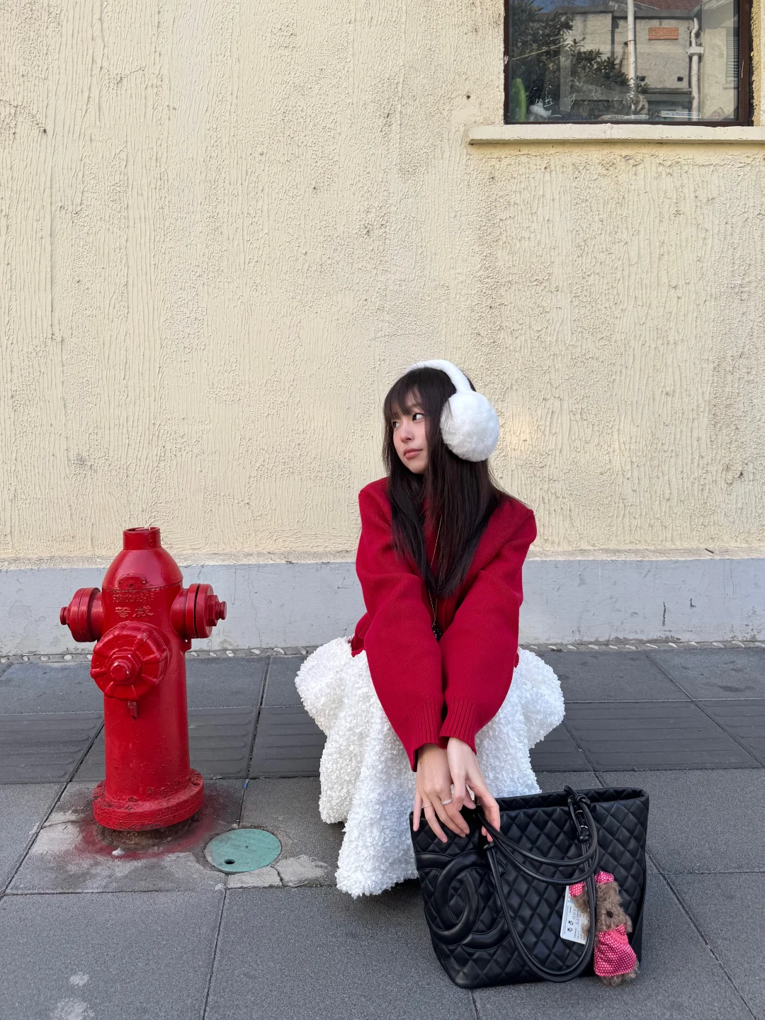 沉闷的冬天需要一点红色 今天穿红毛衣+白裙 新年穿搭get ~ 小狗挂件也跟着我换红旗袍了 超级可爱! 感觉新春的氛围感满满 期待过年啦