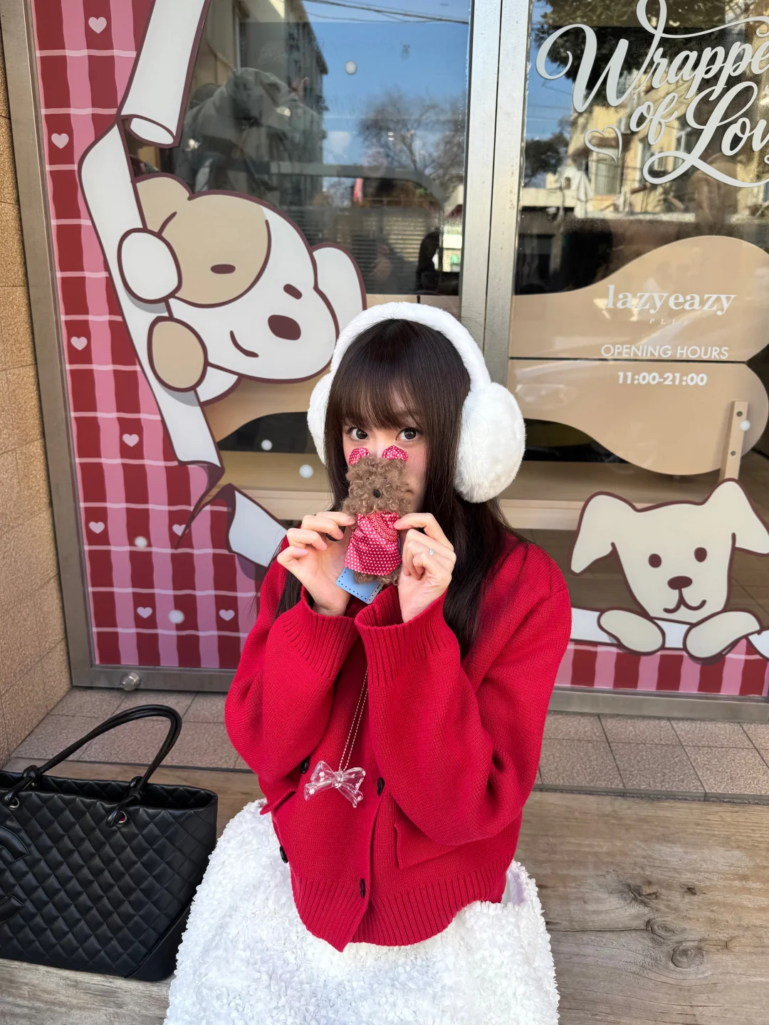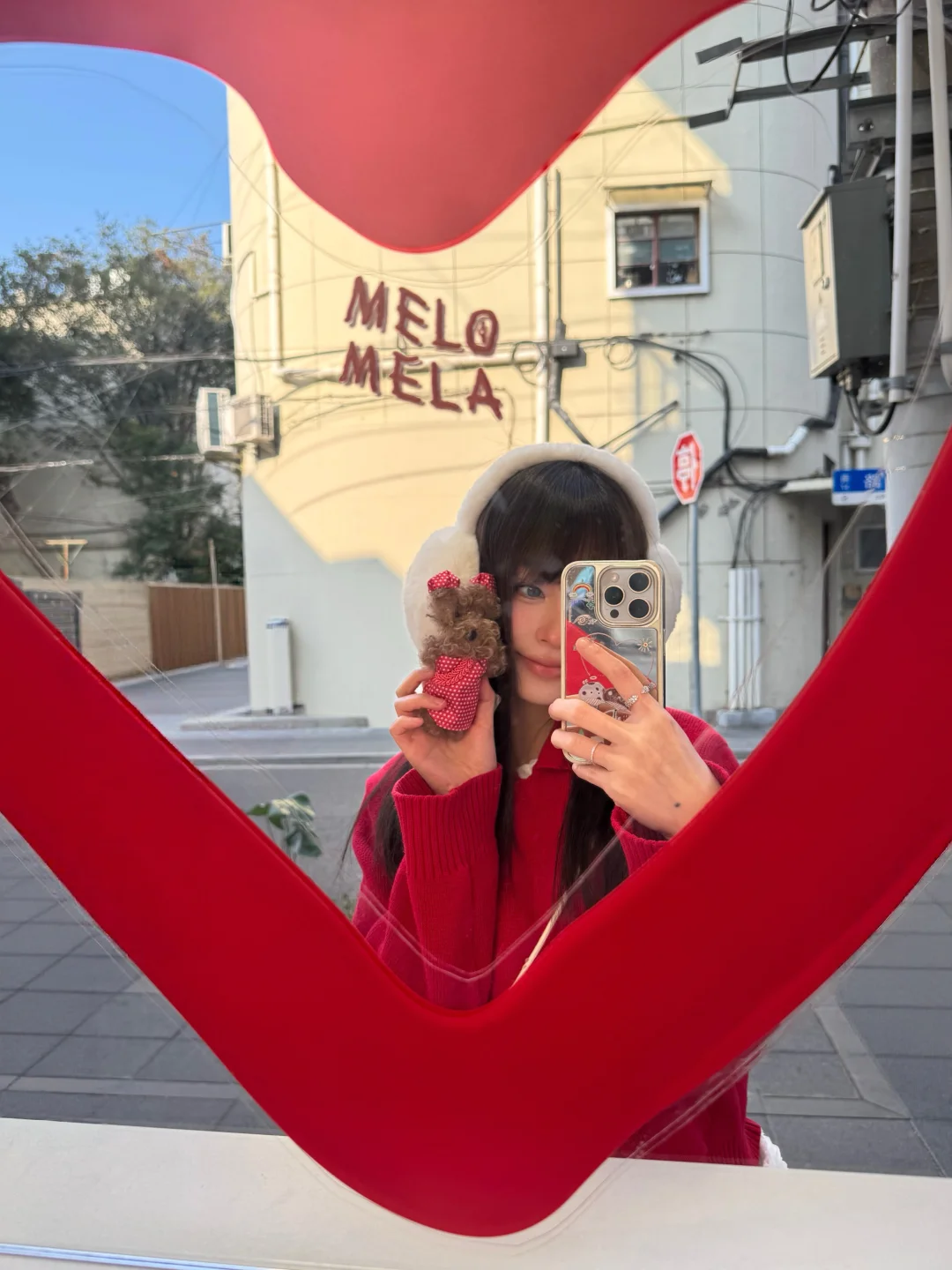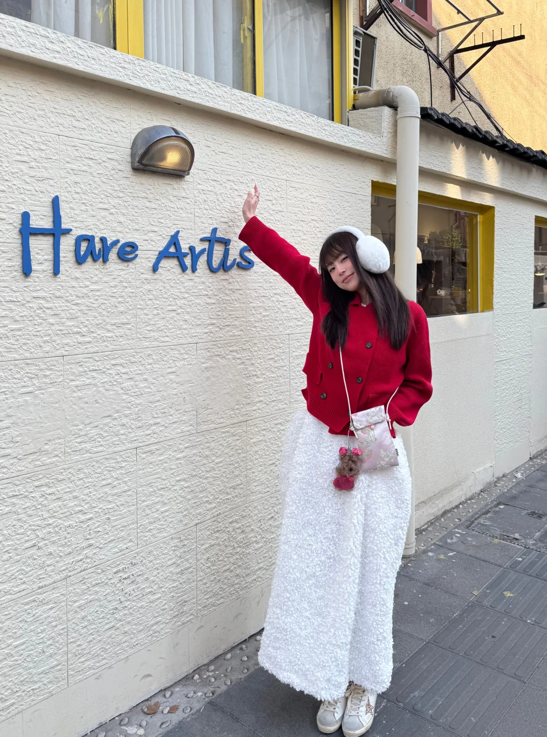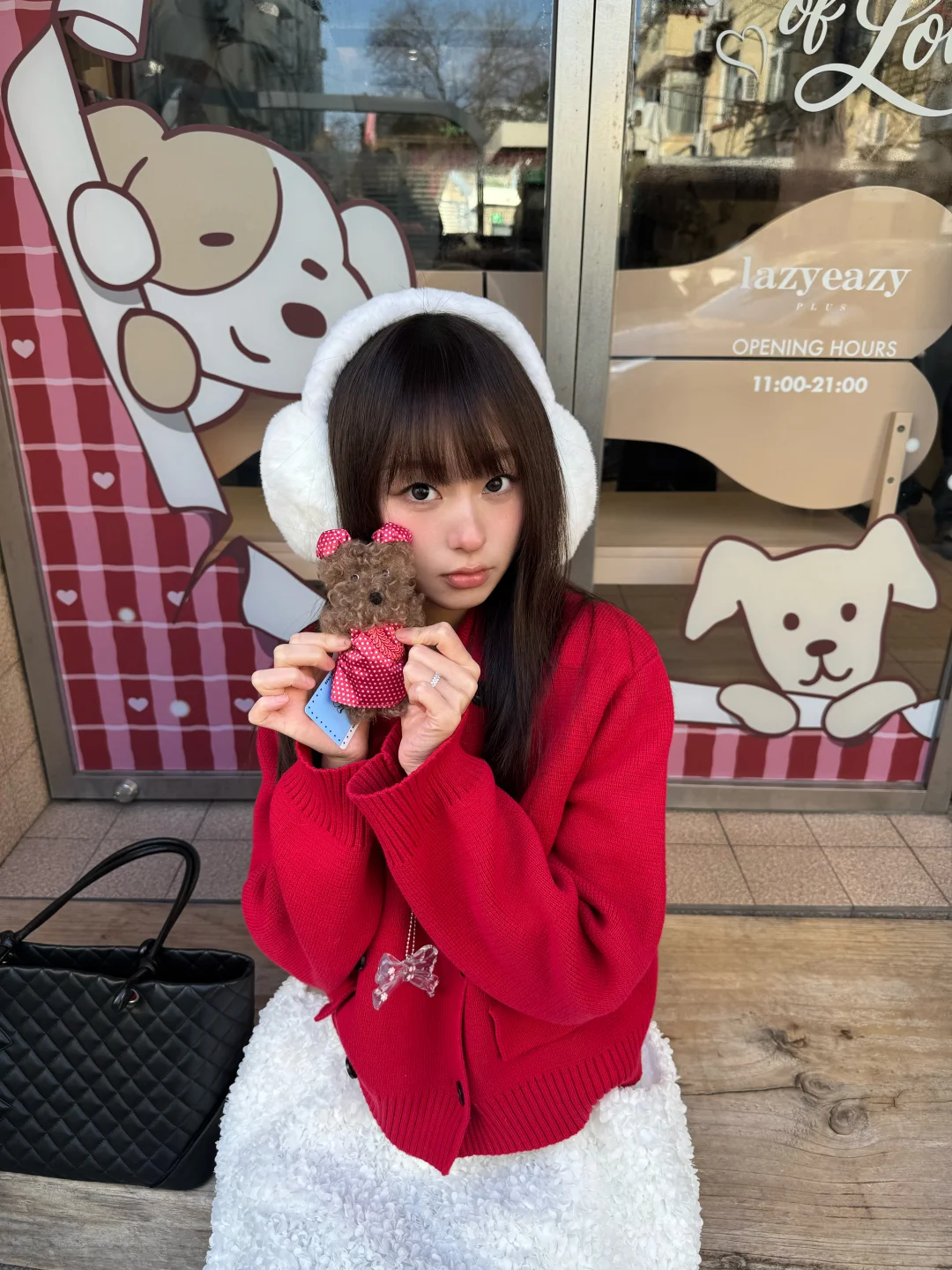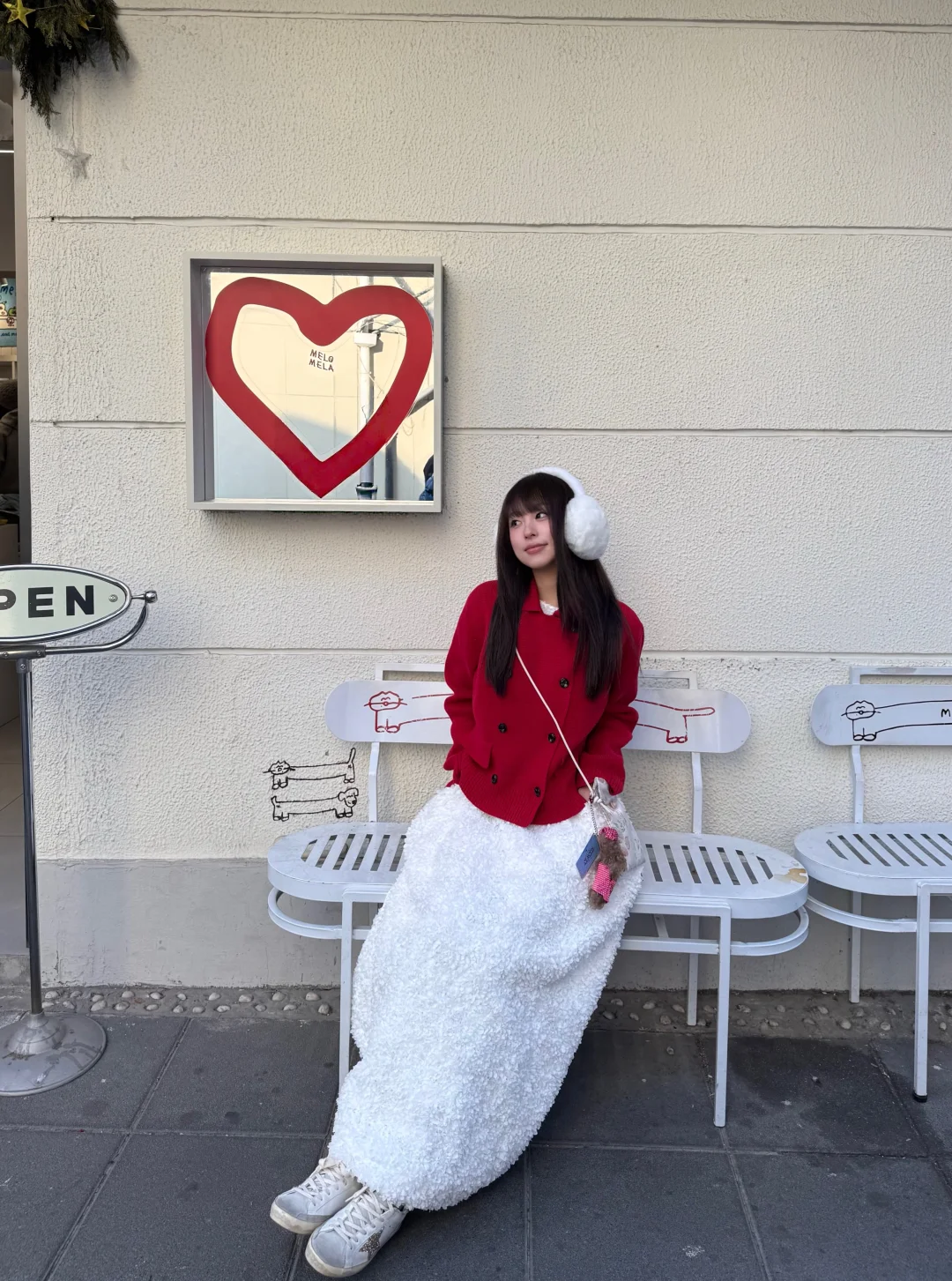 沉闷的冬天需要一点红色 今天穿红毛衣+白裙 新年穿搭get ~ 小狗挂件也跟着我换红旗袍了 超级可爱! 感觉新春的氛围感满满 期待过年啦