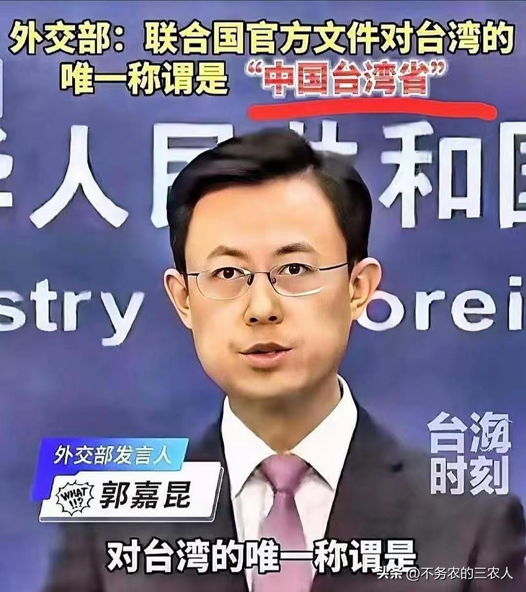 最近有个重磅消息,可能很多人没意识到它的分量——外交部明确表态:联合国官方文件里,对台湾的唯一称谓就是“中国台湾省”! 别小看这几个字,这可不是随便说说的,而是国际社会最权威组织给出的官方定性,堪称两岸统一进程中的一个重要里程碑。咱们普通人能明显感觉到:收复台湾,真的越来越近了。