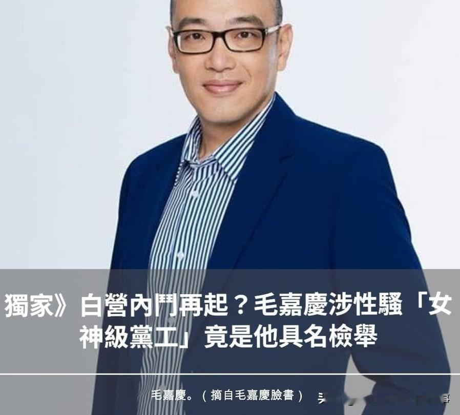 白营再内斗!由蓝转白的毛嘉庆被举报涉嫌性骚扰女党工! 从去年年底开始,台湾民众党内斗四起,不断有资深党员退党,互斗风波上媒体版面!今天媒体爆出代表民众党参选桃园议员的毛嘉庆涉嫌性骚扰党内女神级党工!爆料人是同为民众党参选岛内桃园议员初选的另一位人士。 毛嘉庆曾是国民党资深党工,一度担任过国民党文传会副主委。但2022年他不顾国民党反对以无党籍身份参选桃园中坜议员(当时亲绿的王浩宇被罢免,他眼馋了),参选失败也被国民党开除党籍。他曾经很胖,后来患癌治愈后暴瘦。