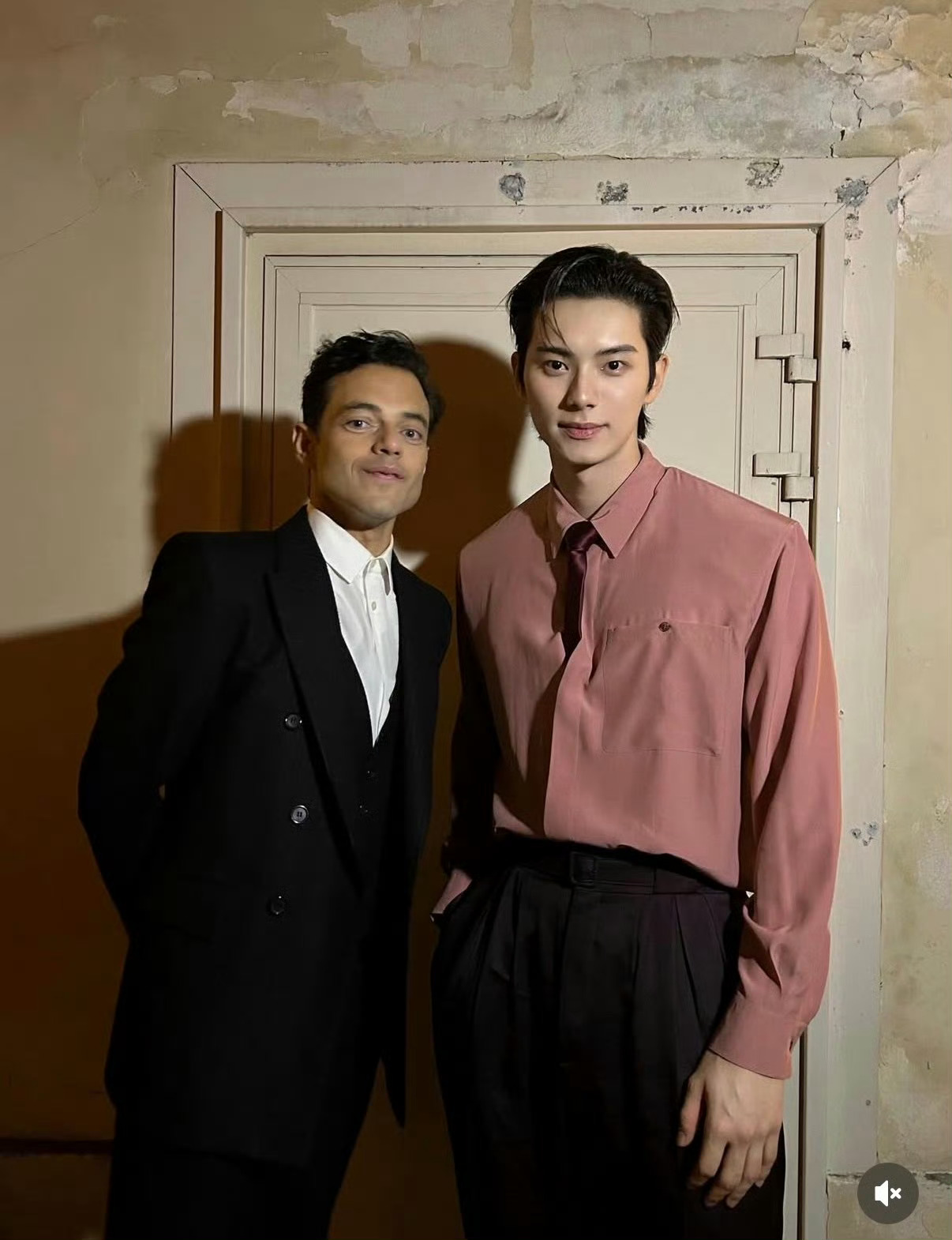 巴黎男装周 190的李彩玟 老师很适合YSL, 但是跟影帝Rami Said Malek 拍的合影拍成了被门挤了脑袋一样
