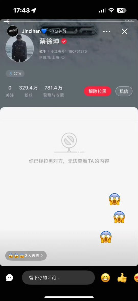 金子涵拉黑蔡徐坤感觉有大🍉诶