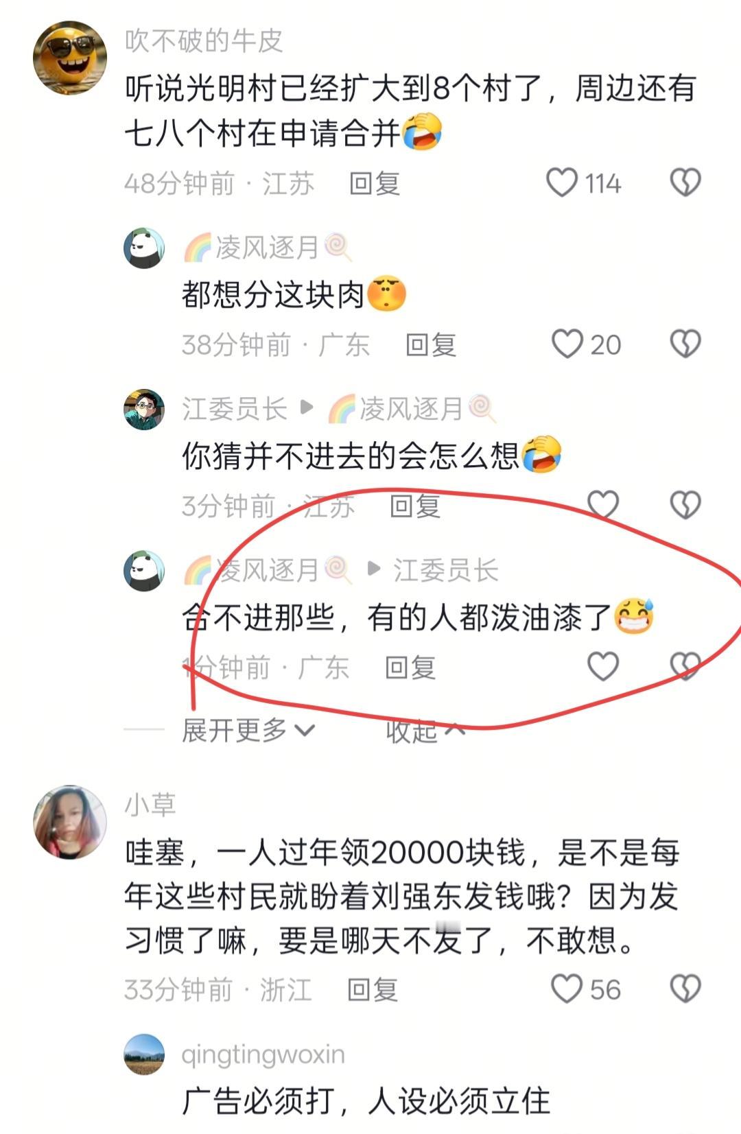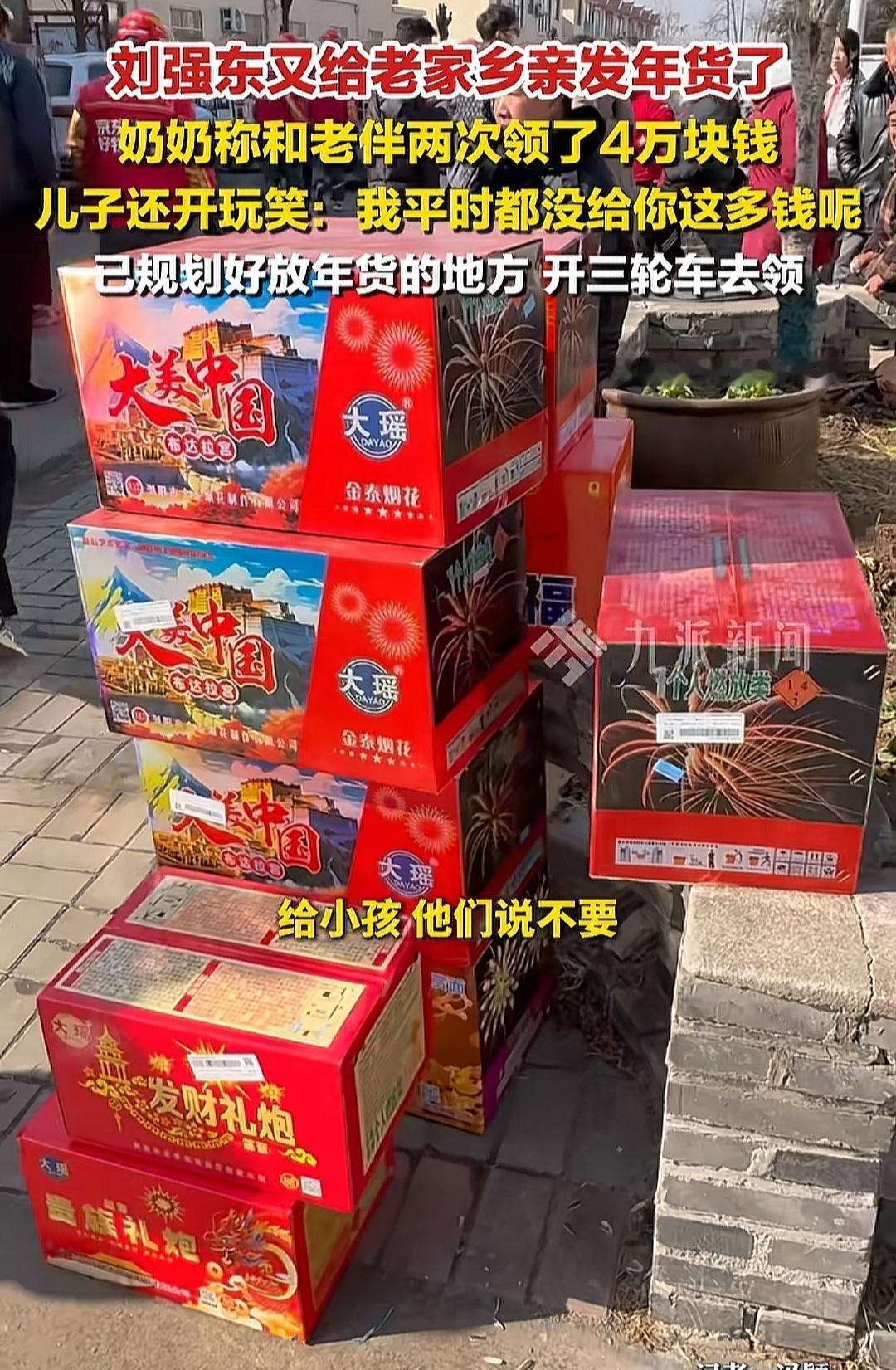 刘强东哪年过年不给村民发烧了,将会面临什么状况? 有个老人说,她跟老伴一共领取了4w(应该是2年),还有很多年货,孩子不要他的,满脸自豪的说孩子懂事,说他都没给过妈妈这么多钱。没看到感谢刘强东,估计已经习惯了接受他的善意。 还有人说,邻边村都想跟发送过年物资的光明村合并,没如愿,就给他家大门泼油漆; 还有网友说,怎么不去帮助生活有困难的人! 看看,人性既习以为常,又自私贪婪,还喜欢强人所难。要是哪天京东遇到困难了,过年物资发不出来了,刘强东会为现在的善意行为而后悔吗?因为人言可畏啊!