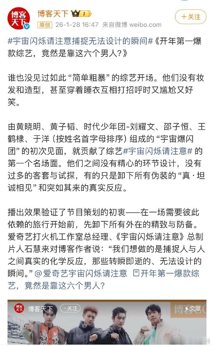 宇宙闪烁请注意开年第一爆款综艺开年第一爆款综艺媒体盖章认证,宇闪坐稳开年第一爆款