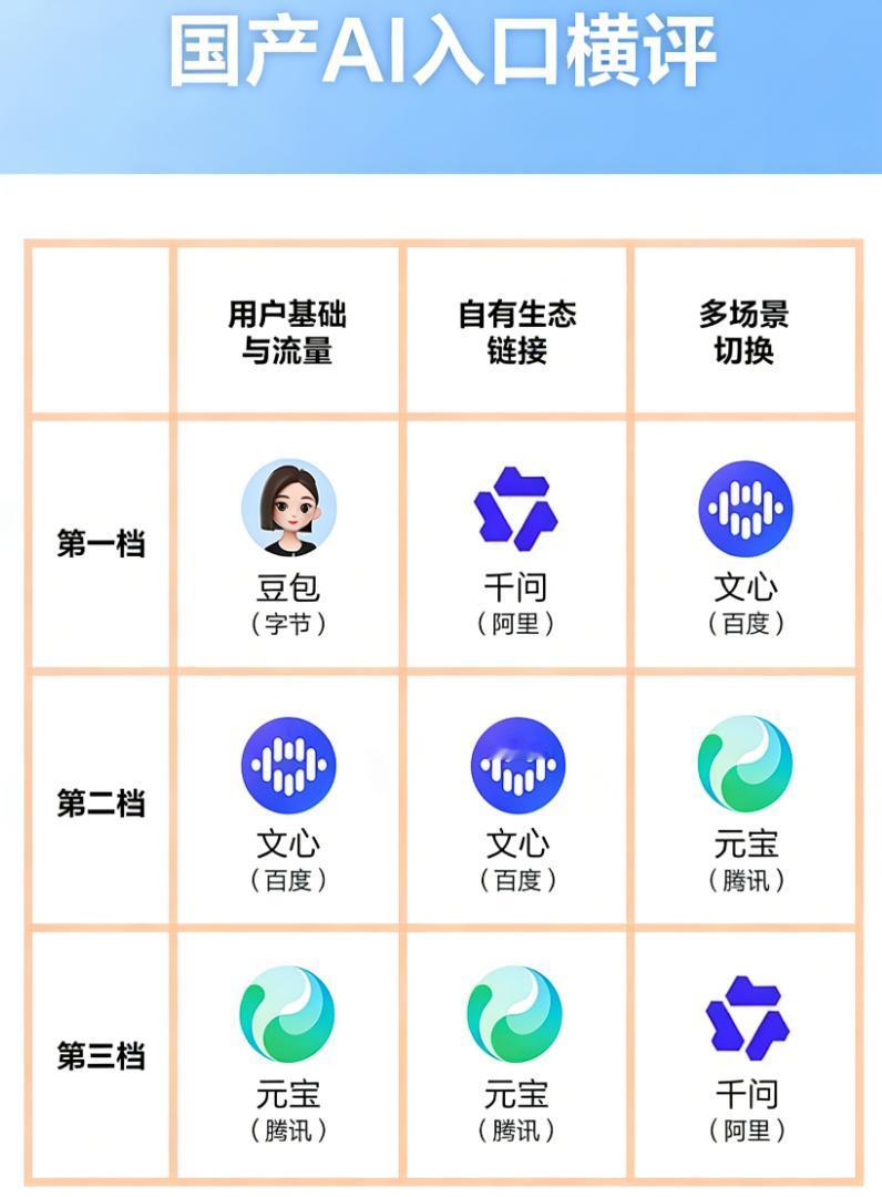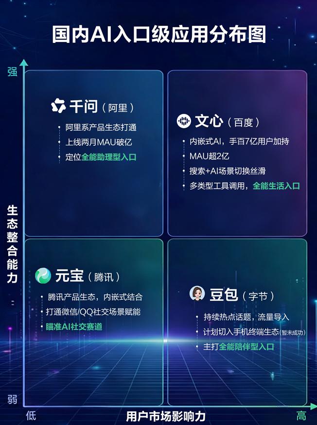AI大战开年就卷!看豆包千问百度文心三大家如何出招 2026年AI应用之争进入白热化,各家不仅要秀技术,还得疯狂抢市场。腾讯、百度春节先后甩出AI红包当开战信号,其中元宝的动作大有挑战,豆包、千问、文心三大家的意思,感觉是“立马开撕”? 元宝靠撒钱炸场,春节期间说要狂砸10亿红包,但如果用户都为红包而来,留存上保持质疑。豆包更是秀的起飞,先是豆包手机助手营销出圈,而后AI打电话,又拉了一波日活。千问方面,绑定阿里全家桶,淘宝、支付宝里直接用AI比价、订票,月活也迎来暴涨,但生态的护城河有多深,谁也说不清。 文心今年春节也要撒5亿红包,它靠技术全栈自研,迭代快、适配强,以及搜索场景无缝切换,搜问题直接生成攻略、教步骤等,感觉用户用着用着就离不开了。更重要的是,再加上手百7亿用户池,获客成本低,用户规模和企业升级成效双榜领先。 说白了,AI大战拼的不是红包,而是谁能让用户每天用、反复用。毕竟,能笑到最后的,是最懂用户需求的。2026年这场大战,才刚刚开始。