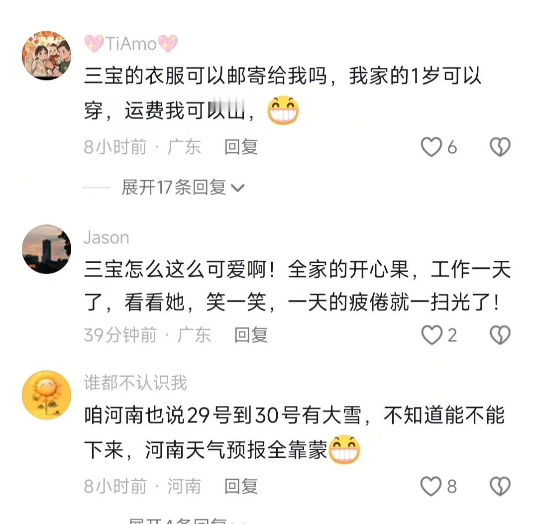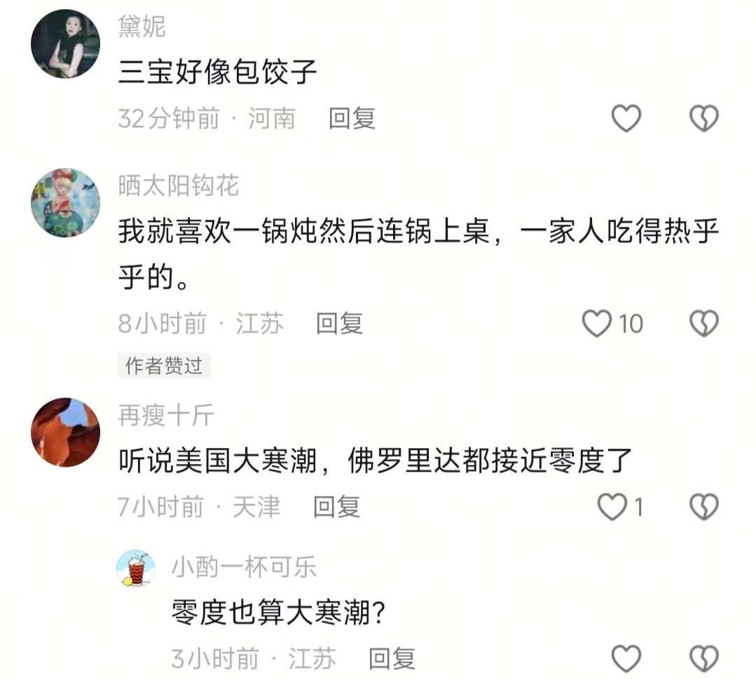 我开始有点理解杰森了 a妈这么完美的女人,谁会不喜欢啊? 不仅是因为非常好的照顾了三个宝宝,最重要的是还有一份好奇心,这个真难得 谁懂啊,刷到河南A妈在美国的暴雪视频,直接被狠狠治愈了!本来只是随手划划,结果被里面的娃和一家人的日常勾着看完了,说实话,在外看到大雪的那种惊喜,真的和在家完全不一样,尤其是一家人热热闹闹的样子,瞬间觉得啥烦恼都没了,大概这就是最舒服的生活状态吧。 A妈说自己多年没见雪,这次美国暴雪直接包得严严实实跑出去撒欢,说真的,那股子兴奋劲隔着屏幕都能感受到。然后就是仨娃的名场面,二宝突然问为啥下雪,A妈随口说因为是白雪公主,结果娃直接喊自己是爱莎公主,我晕,这小脑袋瓜转得也太快了!更离谱的是二宝说同学想把雪加红糖吃,胡扯吧?笑到我崩溃,现在娃的脑洞真的没边了。刚一岁多的三宝对着镜头喊妈妈,黏着A妈不放,吃饭时还奶凶奶凶哎呀哎呀的,萌到心坎里。A妈随手煮了铁锅炖蘑菇,一家人围在一起吃,巴适得很,别人常说,心安处就是家,管它在哪个国家,有家人的地方就有暖乎气,这话是真的戳心。 本来以为宅家玩雪就够有意思了,吃完炖菜A妈又带大宝二宝出门逛,二宝在雪地里撒欢,玩够了回家,杰森已经把雪铲得干干净净,一家人坐一起吃晚餐,这画面真的太棒了!更惊喜的是评论区,直接被网友的热情暖到,有人想要三宝的衣服还愿意出运费,河南老乡吐槽本地天气预报全靠蒙,真的假的?我和小伙伴都惊呆了,还有人说佛罗里达都快零度了,更有人记着A妈回国的事,盼着杰森签证顺利,给力!说实话,之前刷A妈视频,还看到有网友给她寄河南的胡辣汤料,没想到这次评论区还是这么暖心,这种素未谋面的善意,真的让人觉得特温暖。 总之,我想说的是,其实过日子嘛,本来就不用追求多轰轰烈烈,随便凑点热乎的吃食,家人围在一起,哪怕只是看看雪、听听娃的碎碎念,就够完美了。下雪天就该这样,别宅着emo,和家人煮锅热汤、唠唠嗑,哪怕只是出门踩踩雪,生活的小美好,不就藏在这些烟火气里吗?你说是吧!