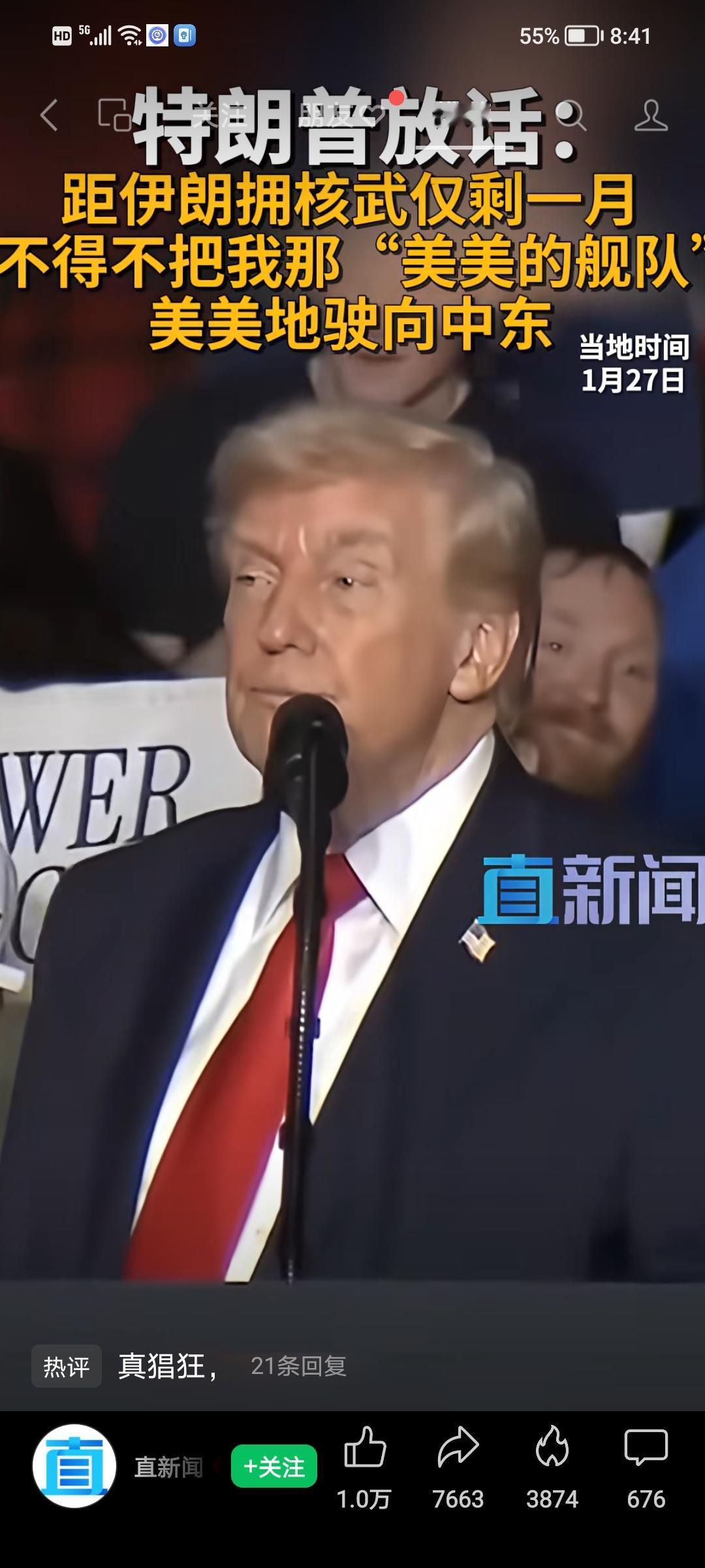 特朗普直言:“要把美美的舰队美美地驶向中东。” 网友直呼特朗普“太猖狂”。他