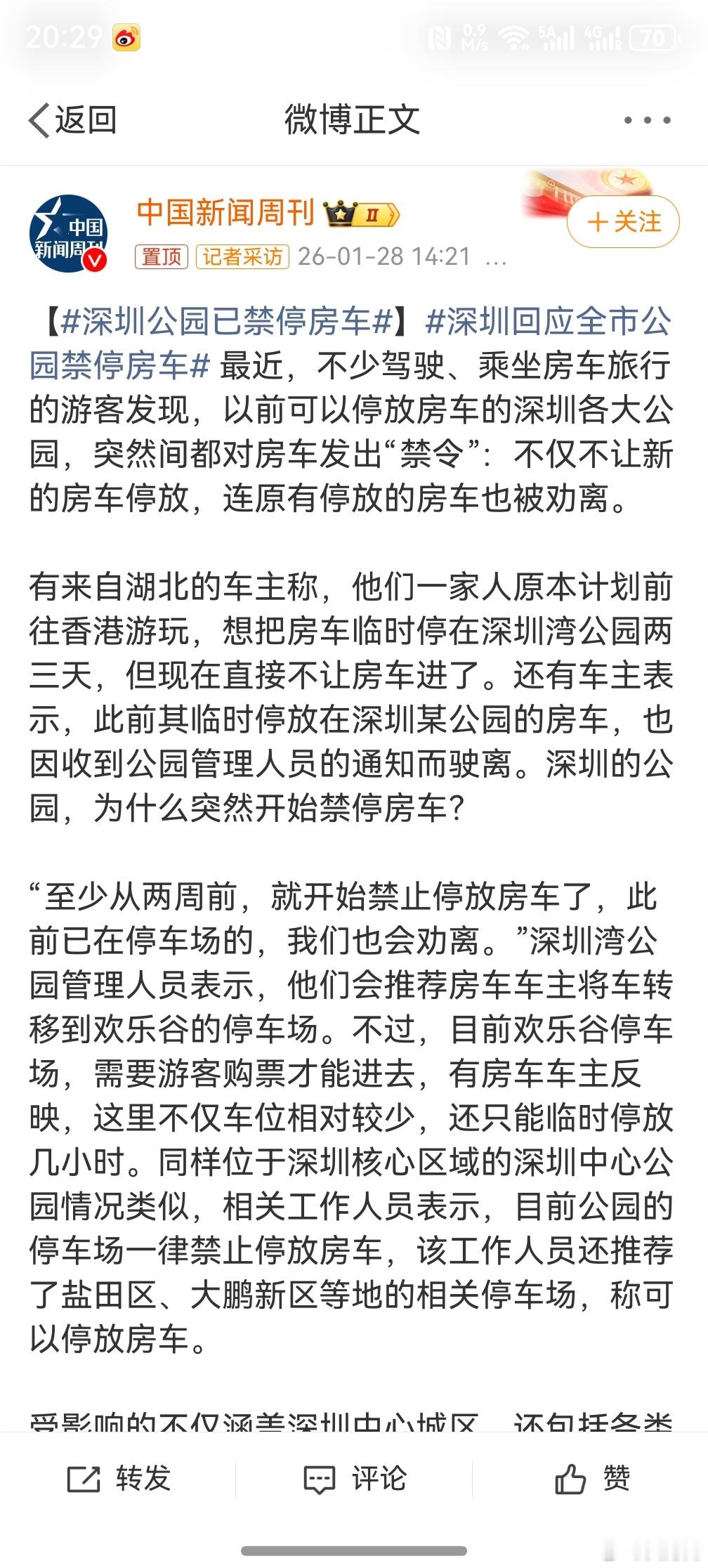 深圳公园已禁停房车 ,我关注了几个房车博主,感觉天天就停在公园,这下好了,后边儿出内容都难了。