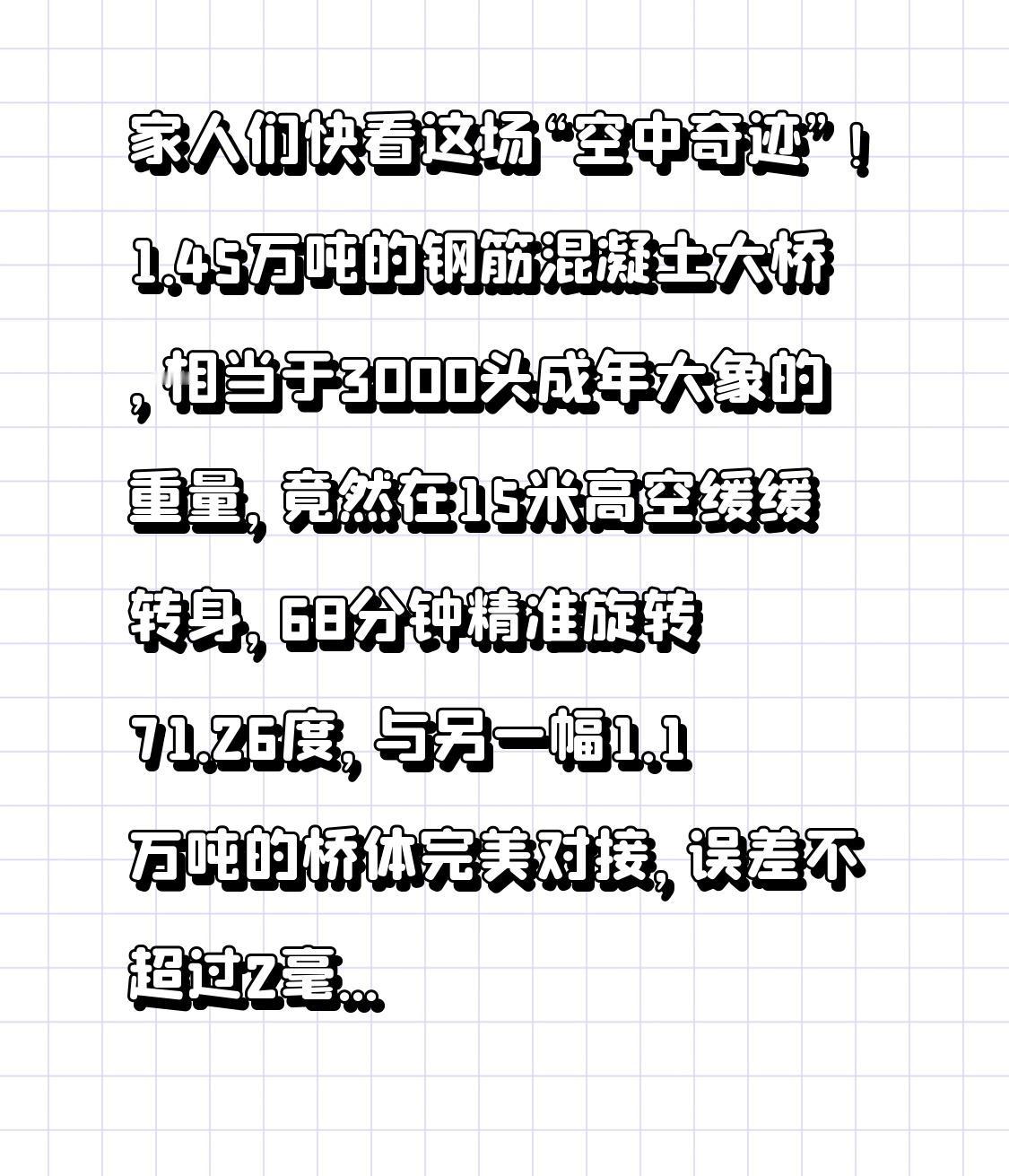 家人们快看这场“空中奇迹”!1.45万吨的钢筋混凝土大桥,相当于3000头成年大