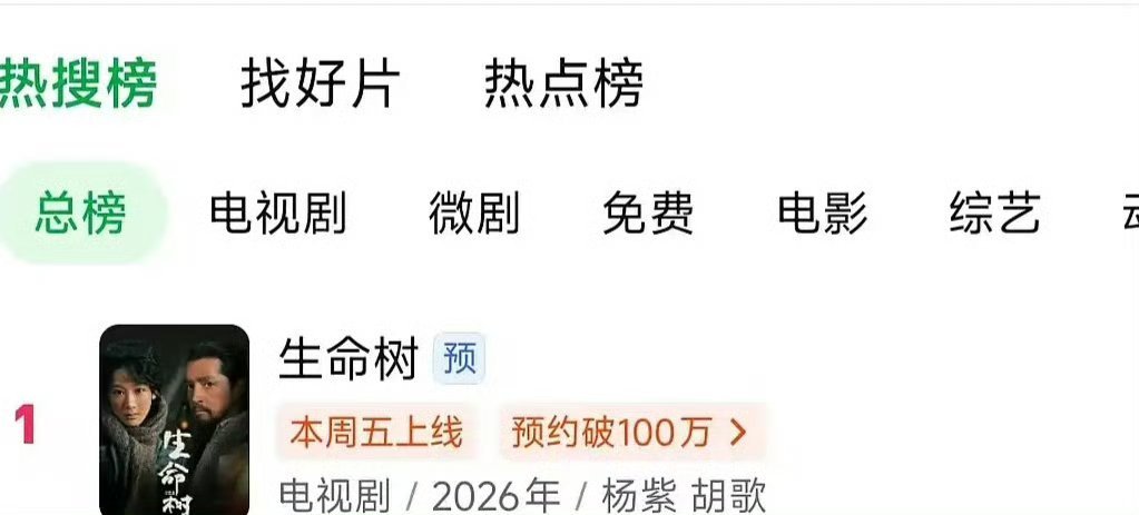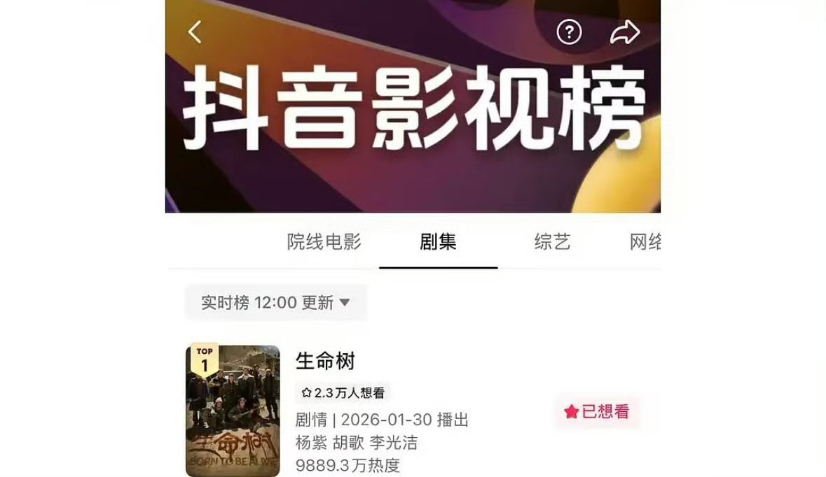 杨紫生命树全平台热度登顶,什么水平不用多说